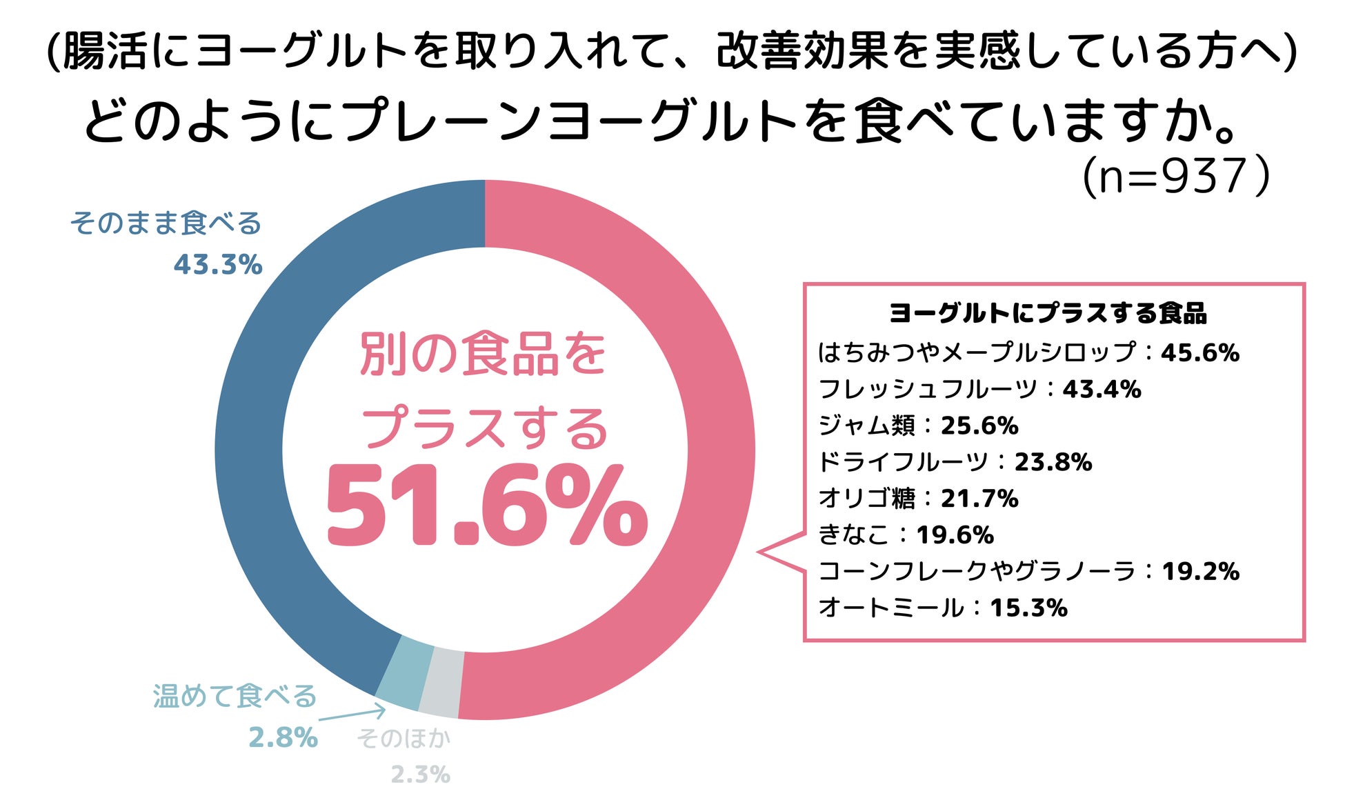 改善を実感している人は、プレーンヨーグルトにちょい足ししている。