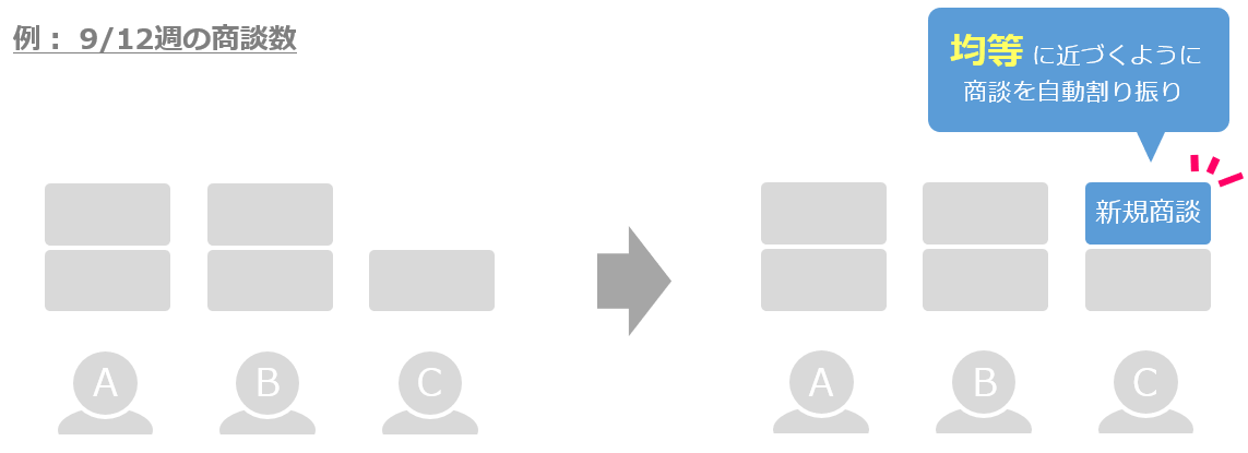 例) ・1週間 の商談数が一番少ない営業担当者に、新規商談を振り分ける