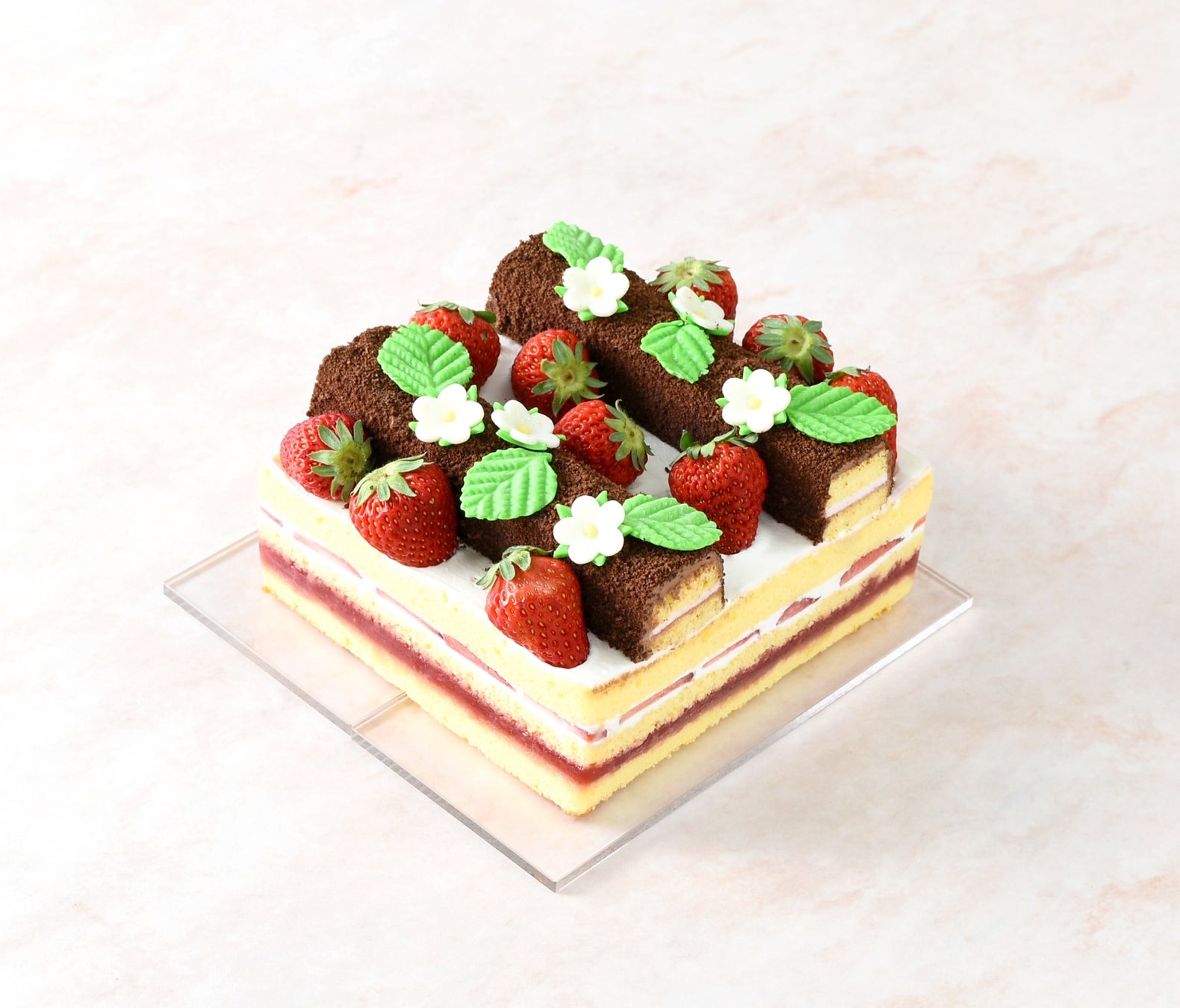 なお、いちごジャムやスポンジ生地の間のいちごゼリーは、高級イチゴ『美人姫』の果肉100%で作った苺ソースがベースになっております。約15cm×16cm 。