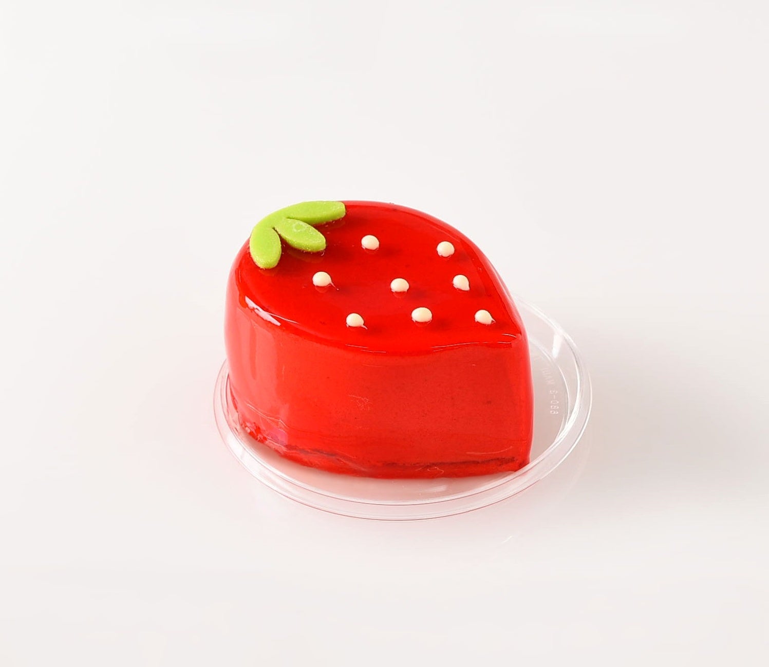 優しい甘さの苺ムースの中に、甘酸っぱい苺のジュレと、ミルキーな練乳のジュレを忍ばせました。絵に描いたようなかわいい苺がそのままケーキになった見た目も楽しい季節の一品です。