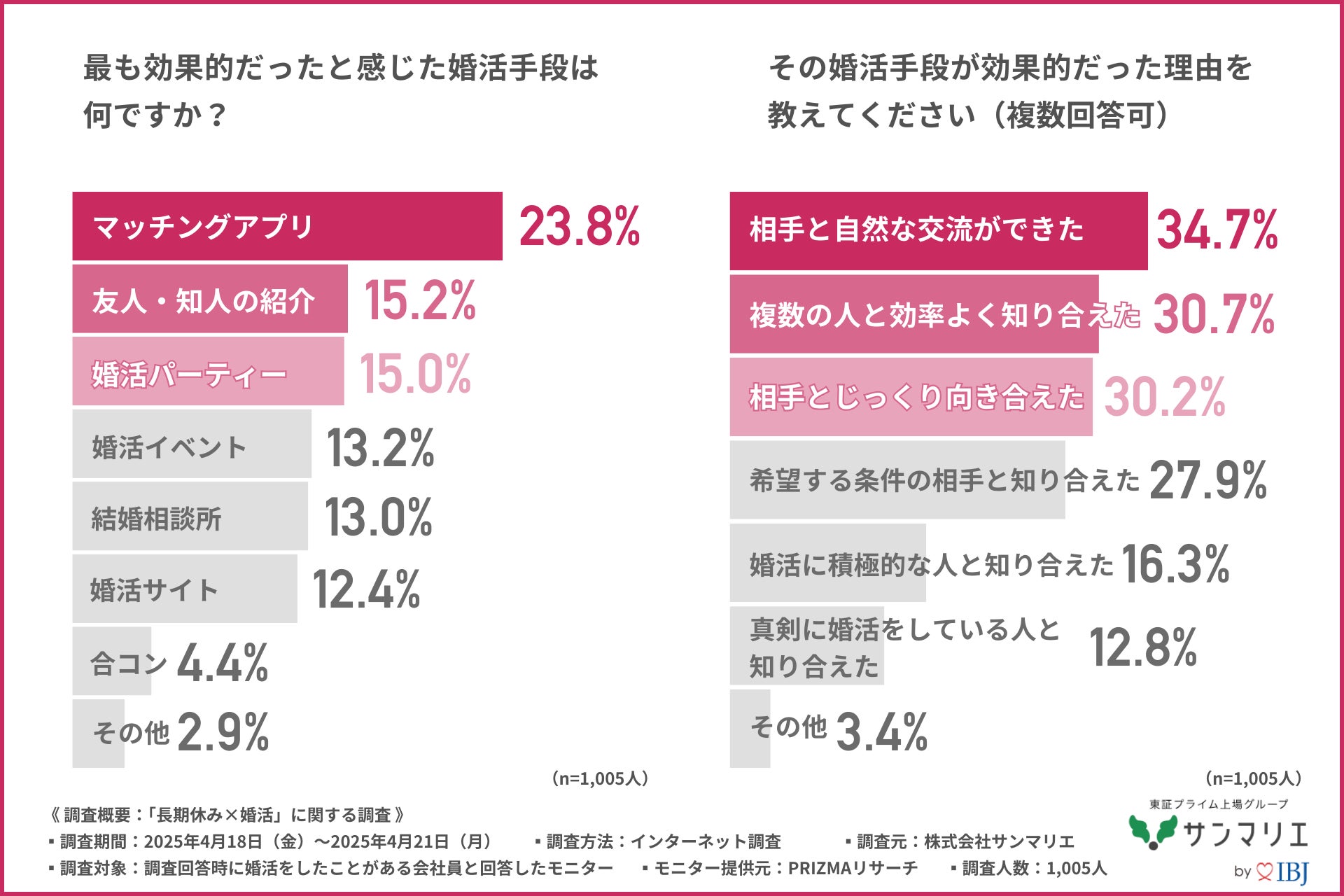 約7割が「長期休みは婚活のチャンス」と回答!効果的だった婚活手段ランキング1位は『マッチングアプリ』!?