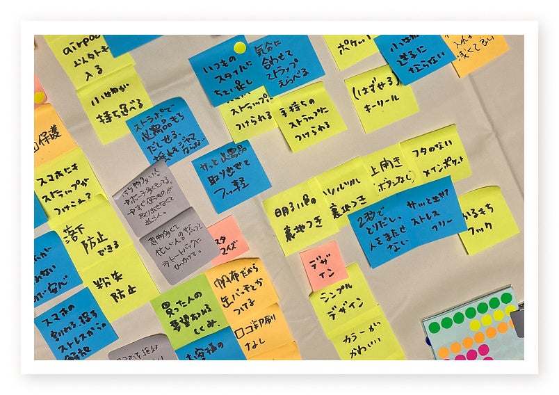 お客様との会話の中「毎日使うリップクリームもスマホストラップに付けられないかな?」「スマホを出す時にカギとかが落っこちないスマホポーチが欲しい!」などのご要望を頂いていました。そこから生まれたのが「ストラポ」のアイデア。