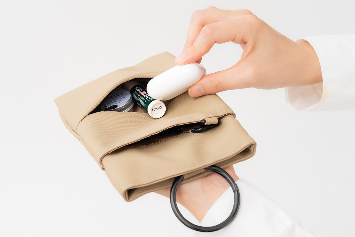 ◉リップクリームや鍵、バームやイヤホンを持ち運べます。