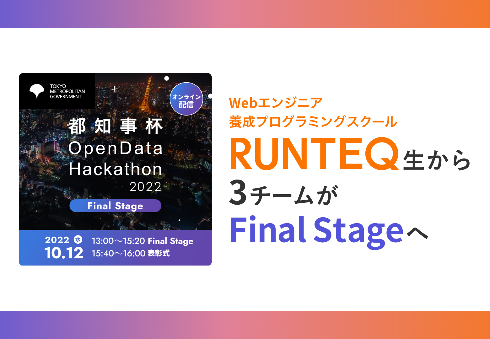 都知事杯オープンデータ・ハッカソン2022にてWebエンジニア養成スクールRUNTEQ(ランテック)より3チームが優秀作品に選出&Final Stage進出