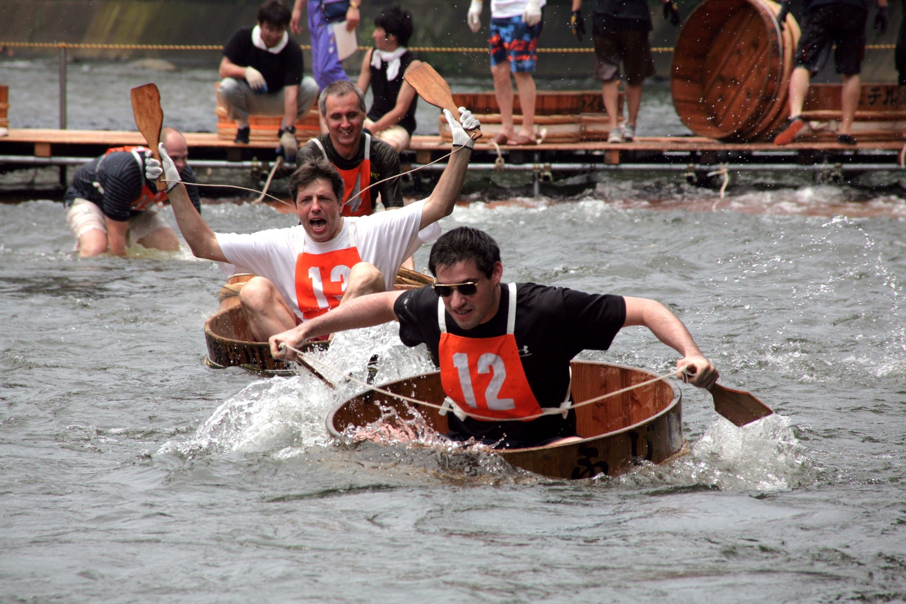 参加資格は、小学4年生から70歳まで、申し込み後の抽選に当選された方、チームが出場できます。途中で転覆してしまってもタライと一緒にゴールを目指してタイムを競います。