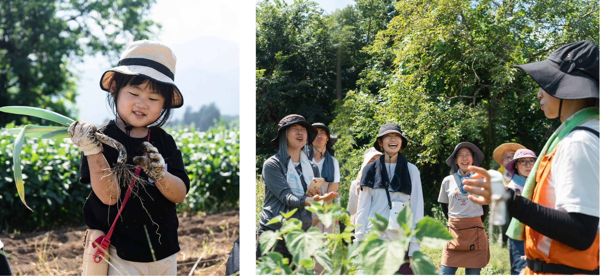 八ヶ岳の麓、山梨県小淵沢にて無農薬・無化学肥料で野菜を育てていく畑体験プログラムを開始しています。現在は、経営者やフリーランスなど、ビジネスパーソンや、お子さまなど、約20名のさまざまなライフスタイルのみなさまにご参加いただいています。年間メンバー、単発参加募集中です。