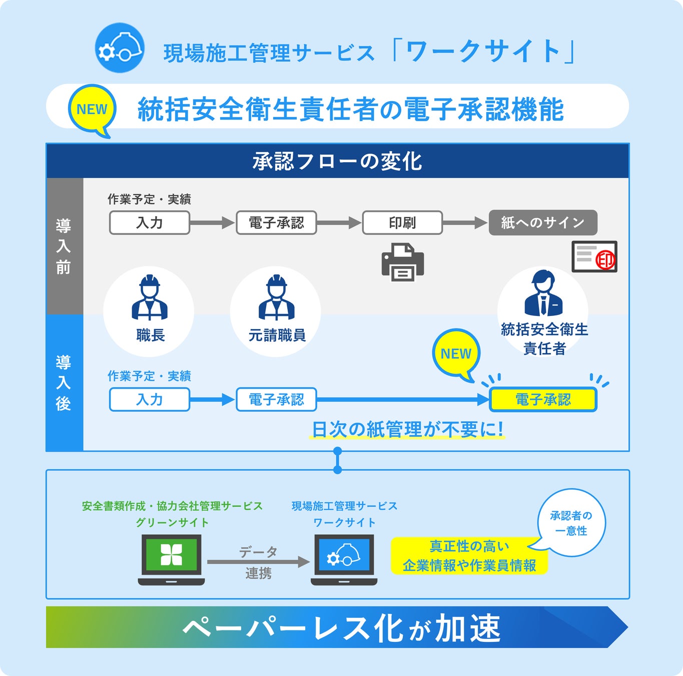 現場施工管理サービス「ワークサイト」のペーパーレス化が加速。統括安全衛生責任者の電子承認機能を追加