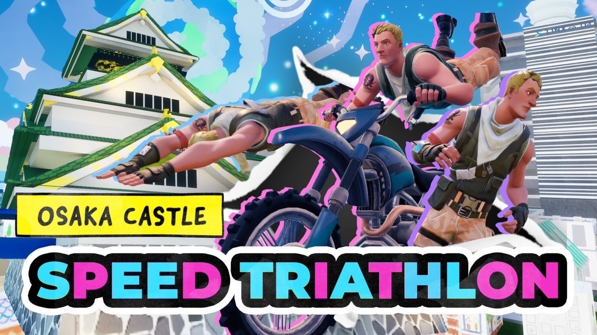 2017年に始まった「大阪城トライアスロン」は、大阪城の東外堀を泳ぎ、大阪城公園から大阪ビジネスパーク(OBP)までを自転車で駆け抜け、公園内を走る独特のコースで、毎年多くの参加者と観客を魅了しています。初開催時には海外エリート選手を含む17歳から81歳までの約850名が参加し、文化庁から「スポーツ文化ツーリズムアワード2017 チャレンジ部門賞」を受賞しました。今年、5月26日に第6回目の開催を迎える「大阪城トライアスロン」を新たにフォートナイト内で再現します。ゲーム内では自転車の代わりにオートバイを使用し、タイムを競う形で仮想空間でも大阪城トライアスロンの魅力を楽しむことができます。