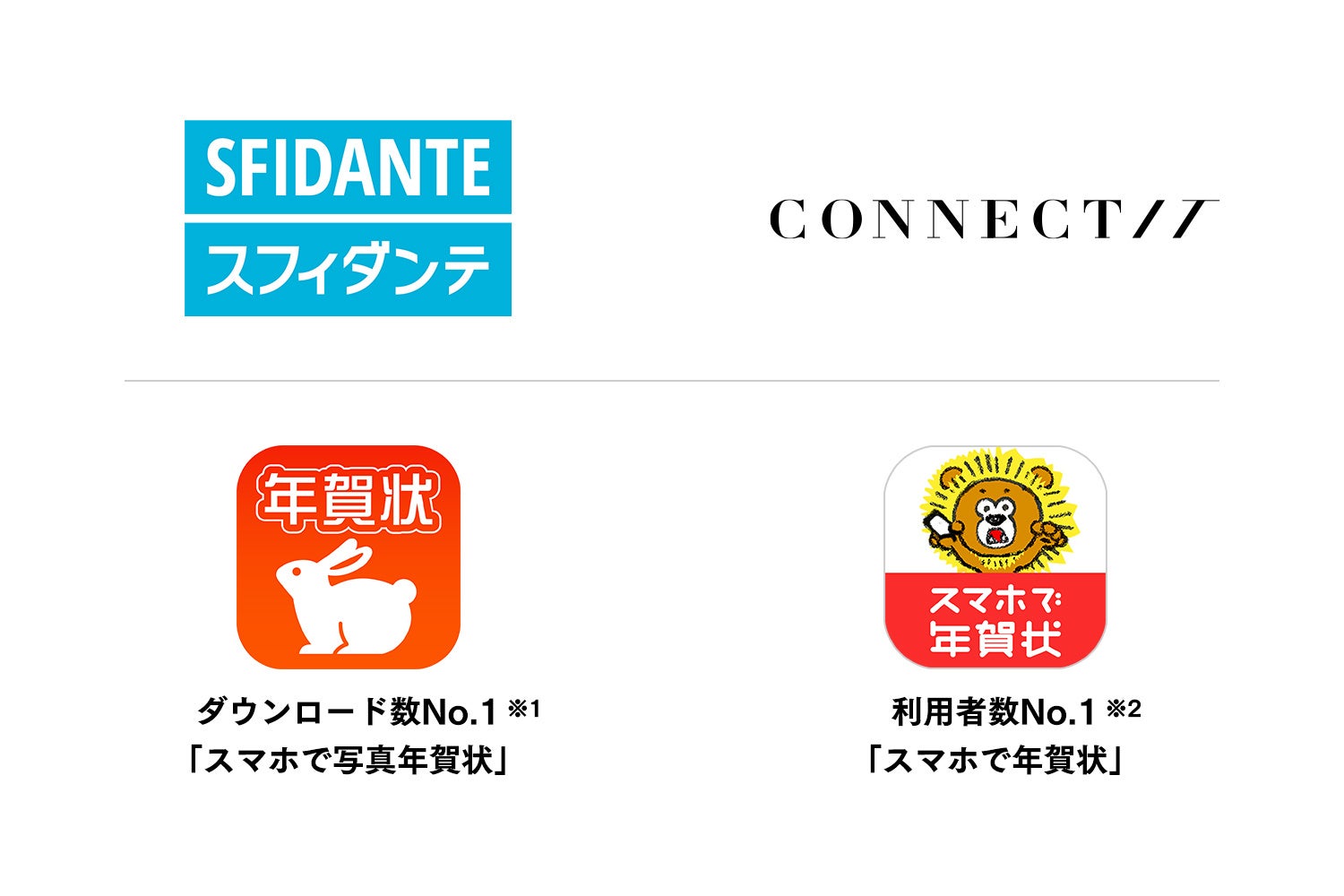 スフィダンテおよびコネクティット(以下「両社」)は共に、ダウンロード数、利用者数、お客様満足度、デザイン数などあらゆる側面の評価で国内トップクラスを誇る年賀状アプリを保有しています。吸収合併を経て、両社の強みを結集させることで、年賀状アプリ日本一の企業を目指します。