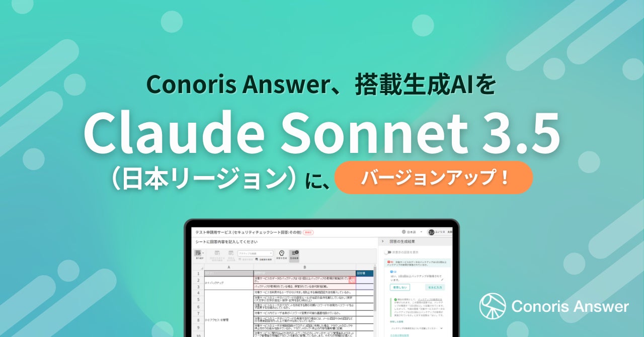 生成AIによるセキュリティチェックシート回答支援を行う「Conoris Answer」、アンソロピック社のClaude Sonnet 3.5に対応