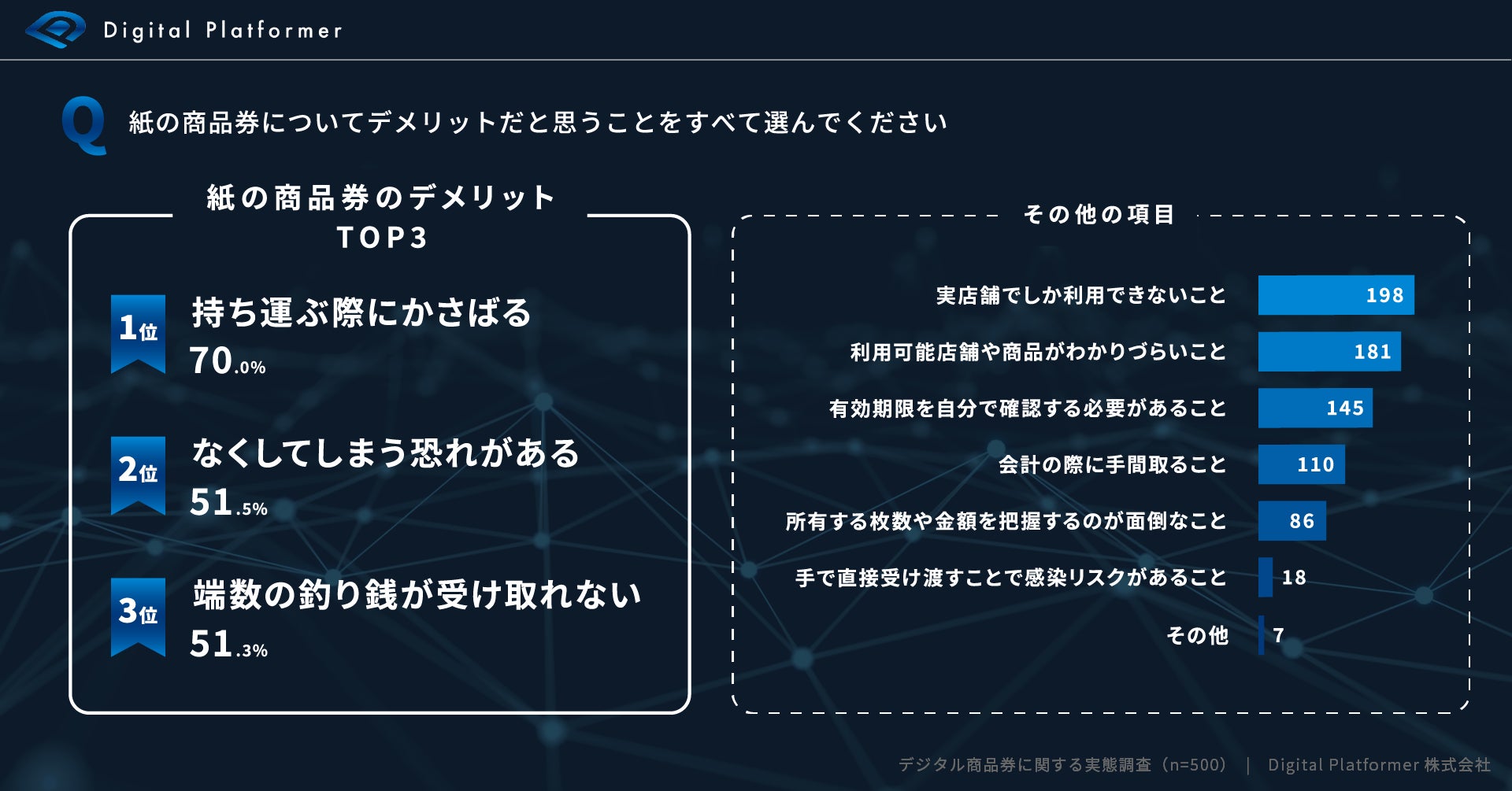 〜「持ち運びが面倒」「なくしやすい」「端数のお釣りがもらえない」といった紙の商品券ならではのデメリットも明らかに 〜