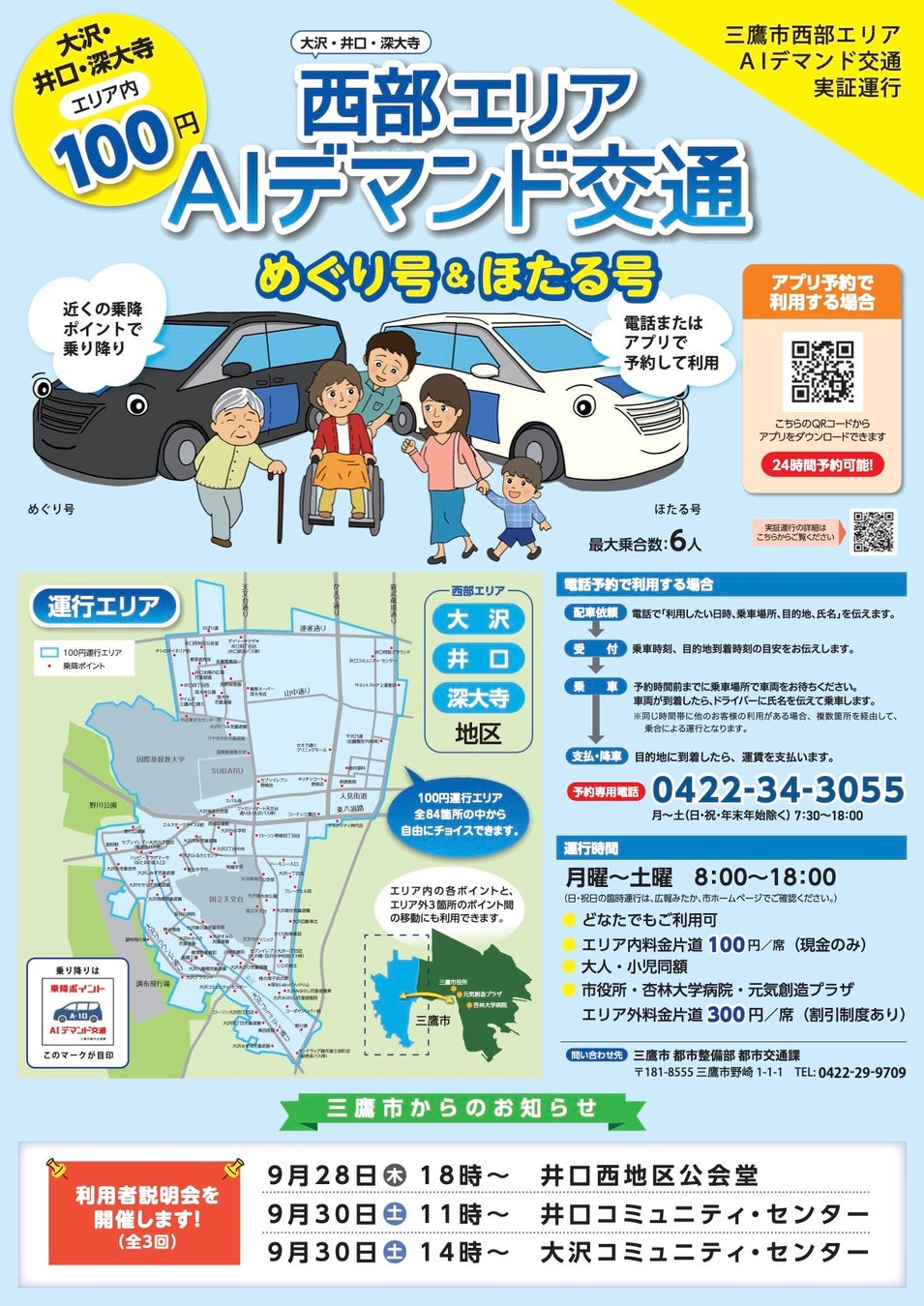 SWAT Mobility、三鷹市で実証運行を行うAIデマンド交通において、10月から運行エリアの拡大と乗降ポイントの追加