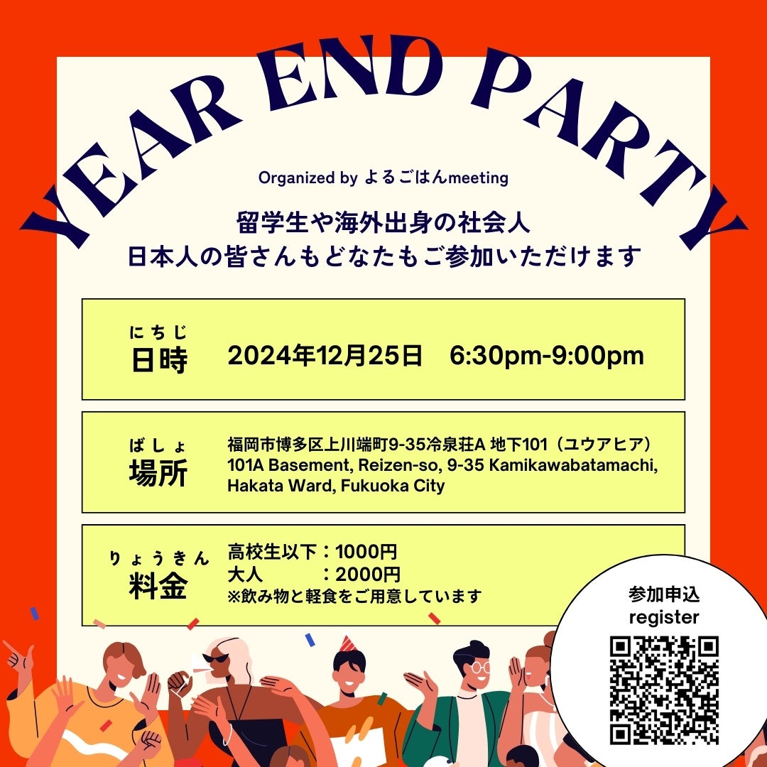 2024年12月25日(水)18:30-21:00 at.ユウアヒア(福岡市博多区)「よるごはんmeeting Year-End Party」※地域住民&Giversどなたでも参加可能