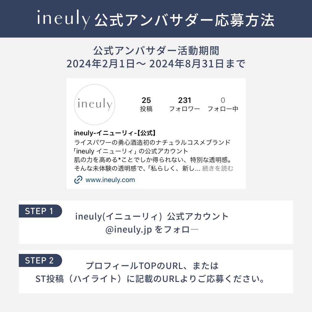 Instagram/LINEアカウントをお持ちで、アンバサダーとして、毎月投稿に参加してくださる方(詳細はineuly公式Instagramのこちらの投稿をチェックしてださい)