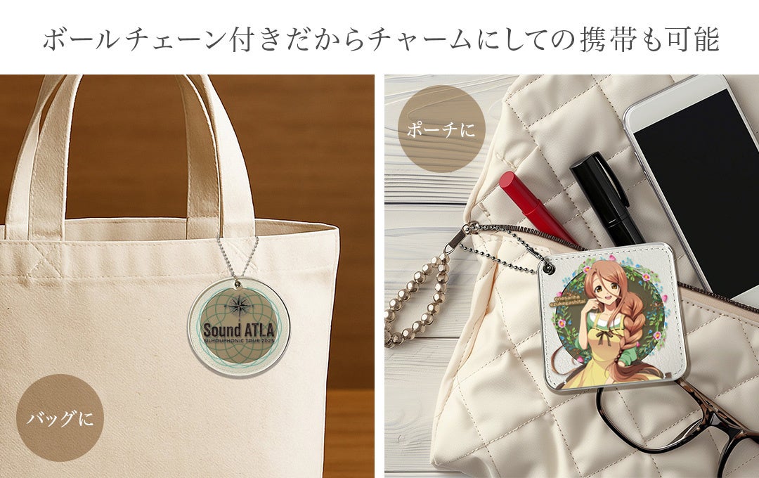 オリジナル アクリルスライドミラーは、キーホルダー感覚でバッグやポーチに付けられる便利な携帯鏡です。ボールチェーン付きなのでチャームとして様々な持ち物に取り付け可能。普段のメイク直しやお出かけのお供として活躍し、日常にさりげなく華やかさをプラスするファッションアイテムとしても人気です。