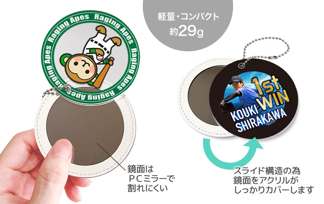 オリジナルグッズ制作で4000社以上の採用実績を誇る株式会社ケイオーから、アクリル全面にフルカラー印刷できる人気のアクリル スライドミラーが新登場です。丸型と角型の2タイプから選べて、アクリルカバーには、全面にフルカラーでの印刷が可能!より多様なブランドやキャラクターなどの表現が可能です。写真・イラスト・ロゴなど、あらゆるビジュアルを美しく表現してOEM制作できるオリジナル グッズです。