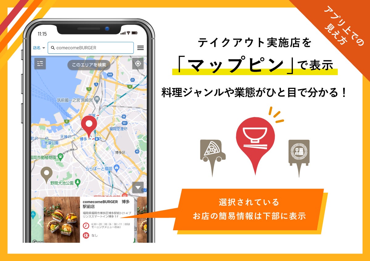 テイクアウト店・キッチンカーを簡単検索できるアプリ!お米バーガー専門店「comecomeBURGER」×「モグモグテイクアウト」のコラボ企画!