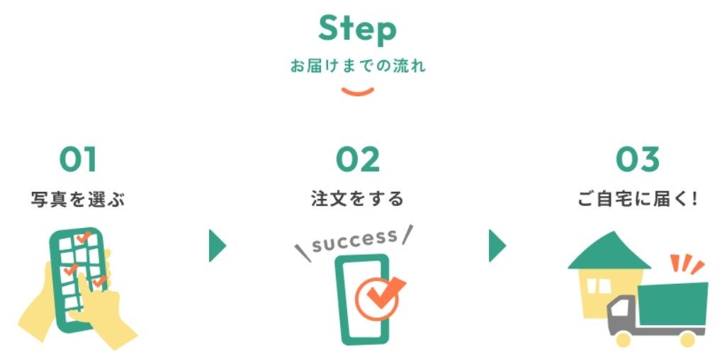 お気に入りの写真をいつでもどこでも簡単に注文できるので、スマホ1つでご自宅に専門店品質の写真が届きます!