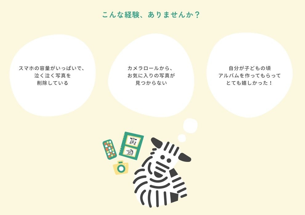 写真プリント・フォトブック・年賀状の三本柱に加え、「しまうまアルバム」や「しまうま出版」の事業を展開。