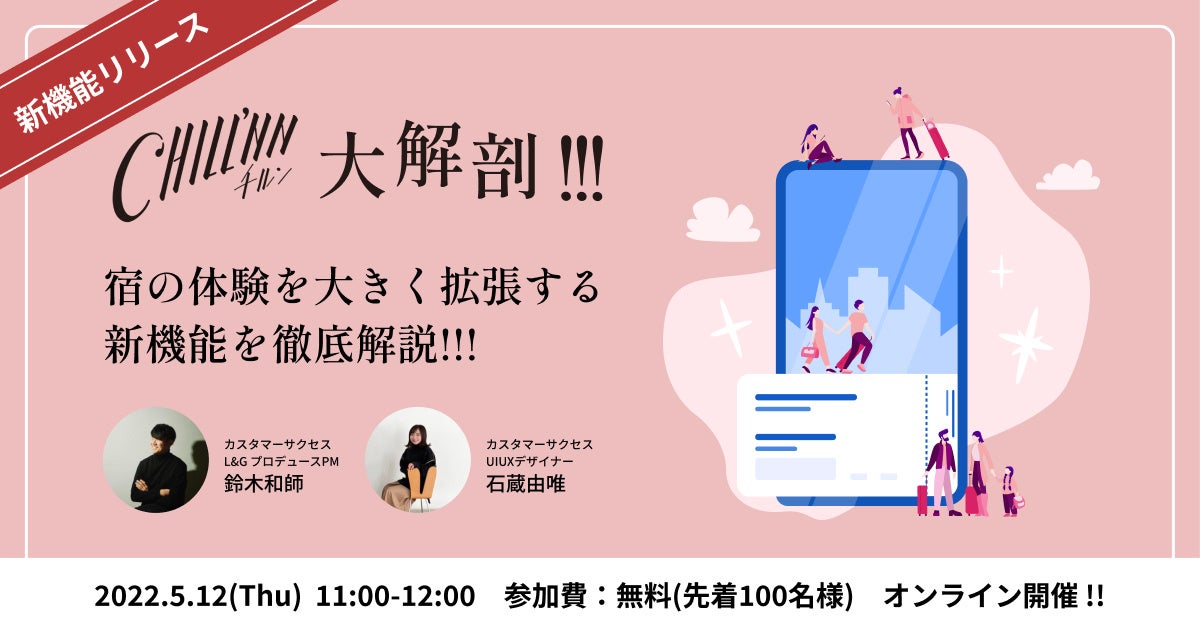 無料ウェビナー「CHILLNN大解剖!!! 宿の体験を大きく拡張する新機能を徹底解説!!!」を5月12日(木)に開催