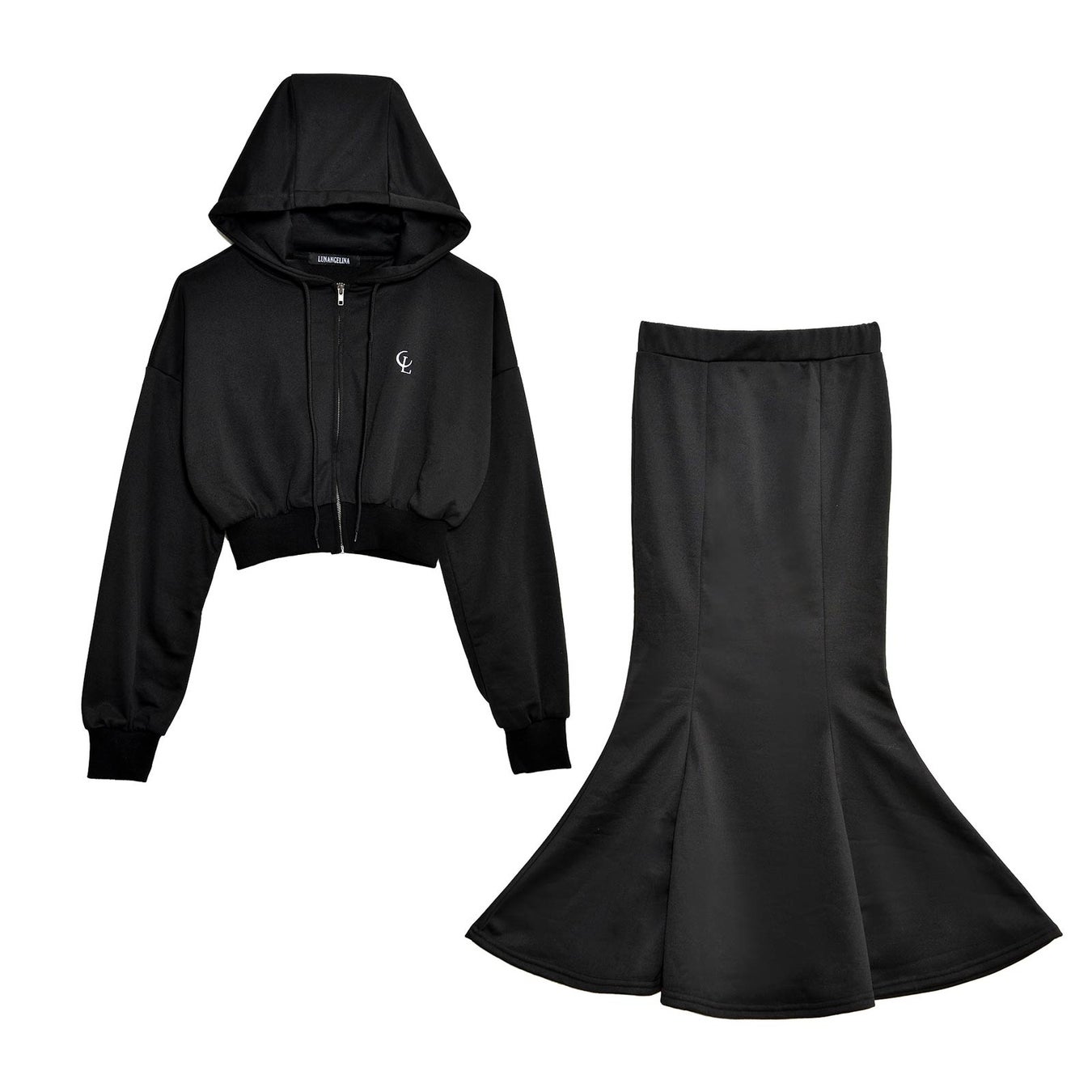 ブラックカラーの美シルエットで細見えするマーメイドスカートが女性らしいキレイなラインを演出。