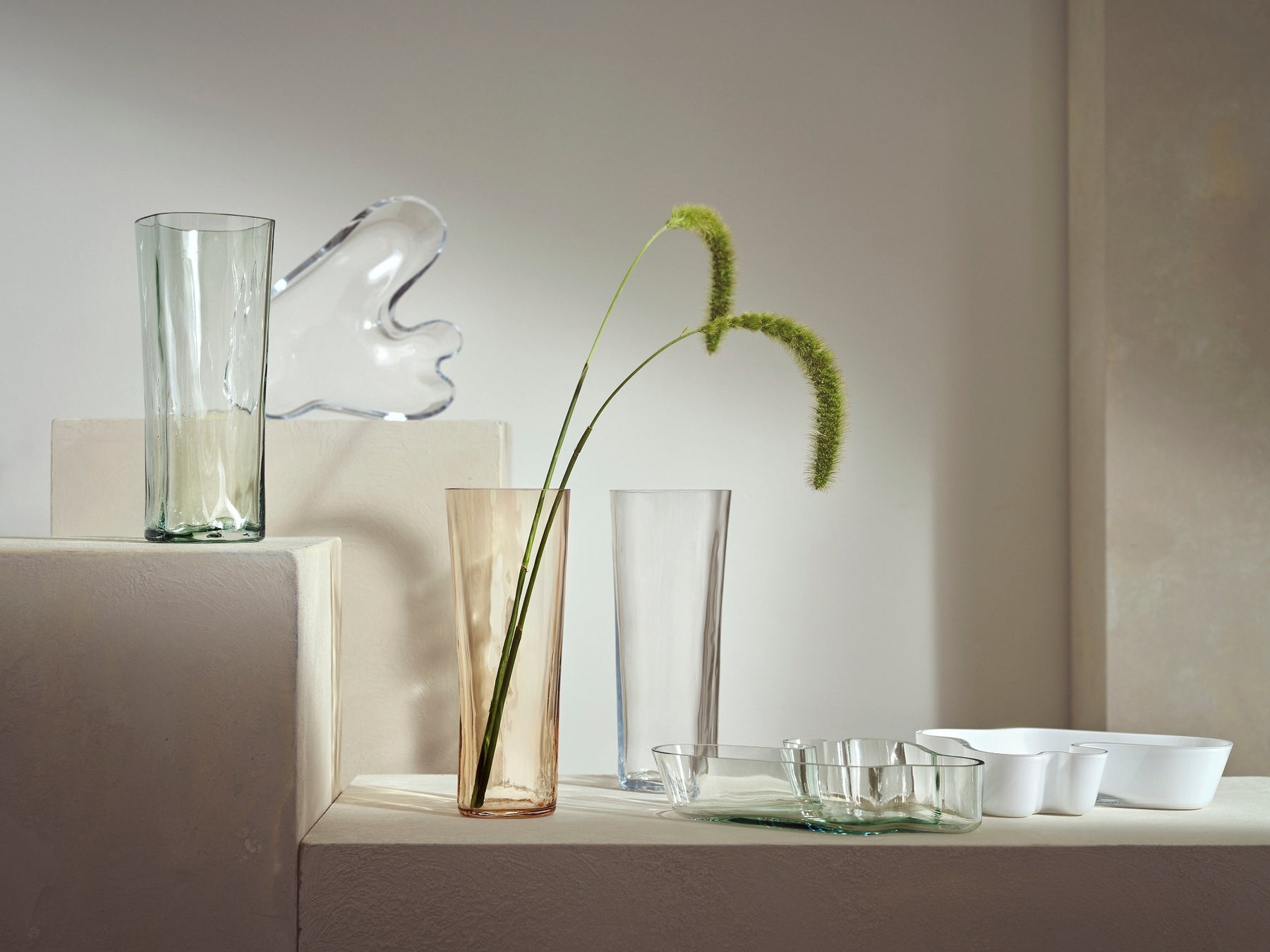 ベースとボウルの口元の形はオリジナルのデザインを忠実に再現していますが、現代のスタイルや多様なフラワーアレンジメントに対応できるよう、様々なサイズでバリエーション豊かに登場。180㎜サイズのベースとボウルは、イッタラの定番コレクションに加わります。