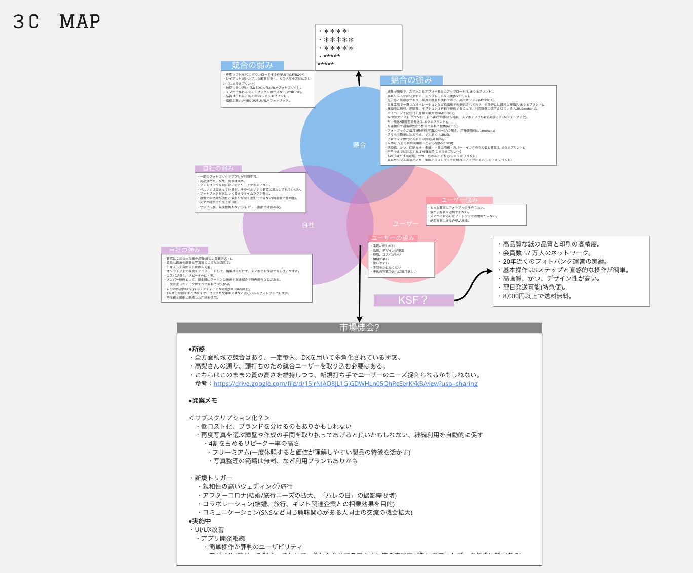 ユーザーと競合のマッピングはMiroなどを用いて行います。共同で行うこともございます。