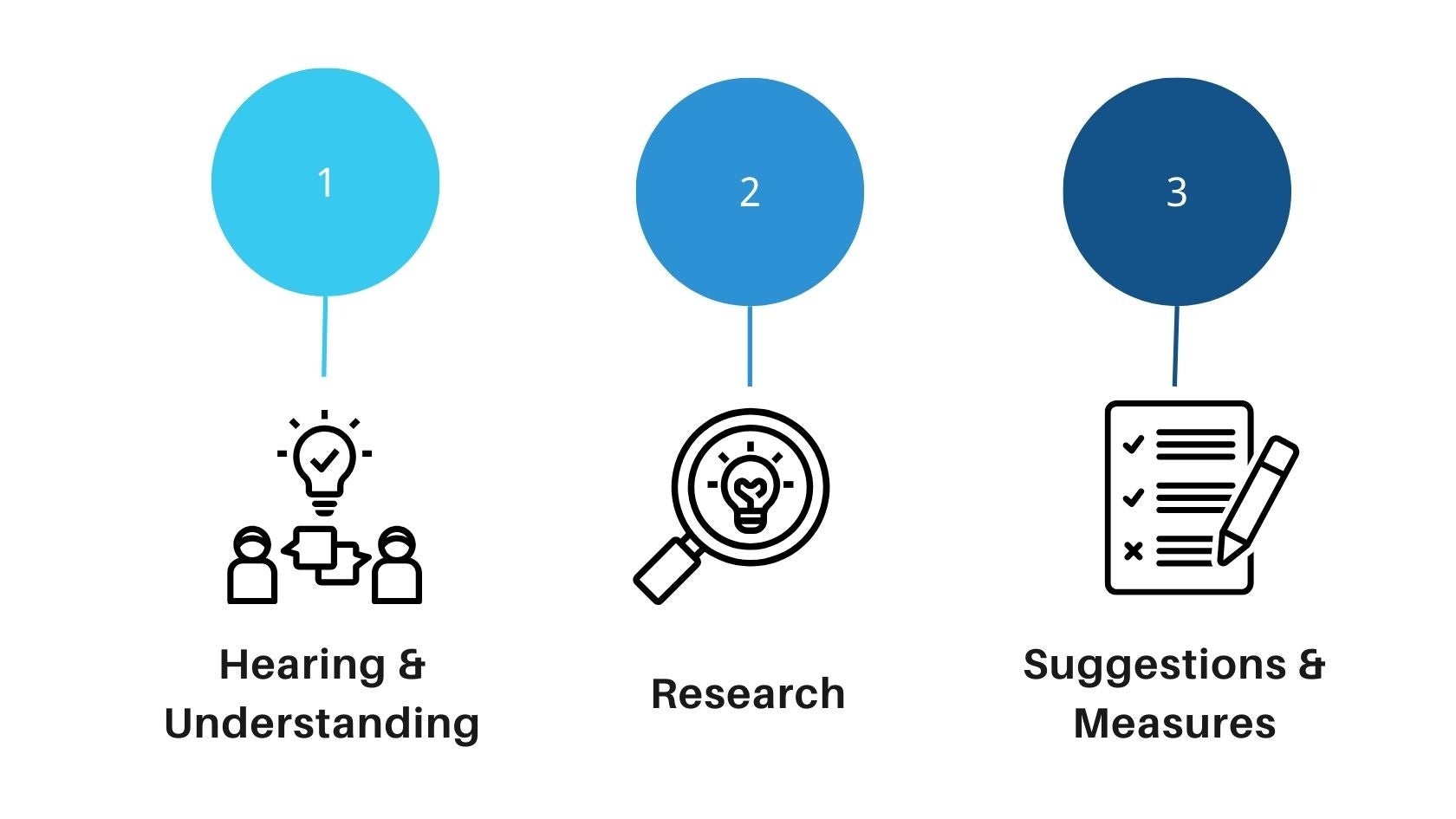 目的に対して必要な項目を実施、最終的に示唆・結論をご提供。同時に推奨される施策をご提案。整理から実アクションの実施手前までの進行をサポートします。