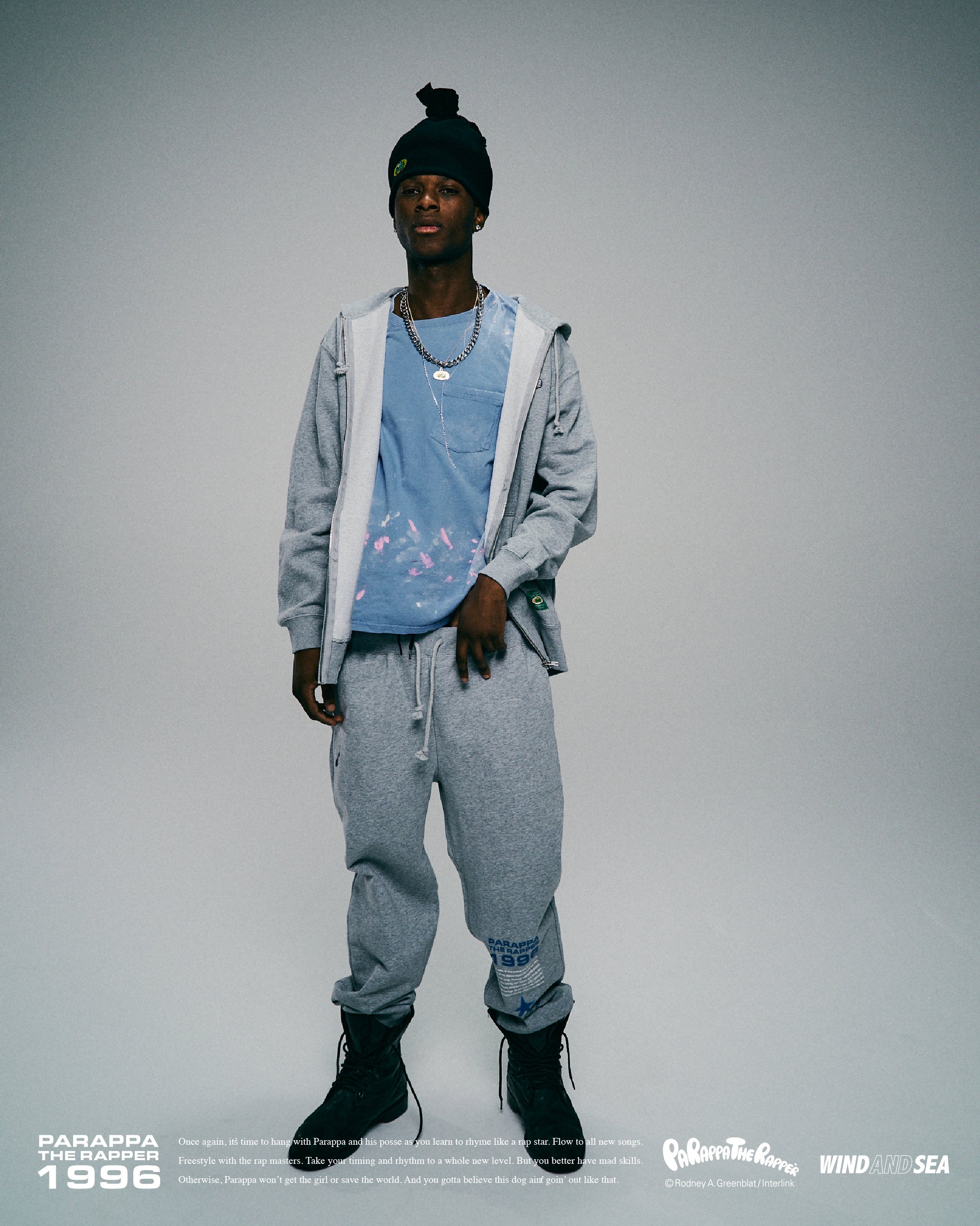 WIND AND SEA(ウィンダンシー)は、長年にわたり親交のあるニューヨーク在住のイラストレーター、ロドニー・グリーンブラット氏とのコラボレーションにより、90年代に一世を風靡したリズムアクションゲーム『パラッパラッパー』の30周年を記念したコラボレーションコレクションを発表いたします。