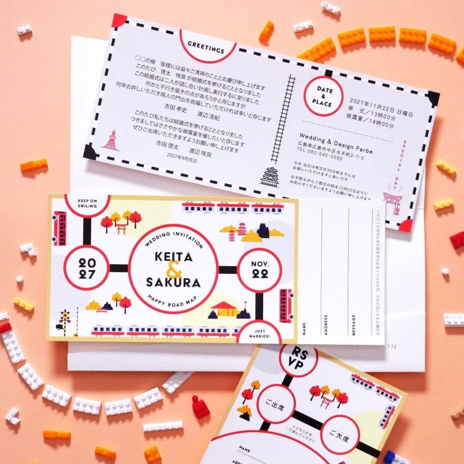 路線図をモチーフにしたPOPなデザインのコチラは、電車好きや遠距離カップルさんにも!あえてゴールを描かないデザインには、二人の新しい道をどこまでも進み続けてほしいという願いも込められています。