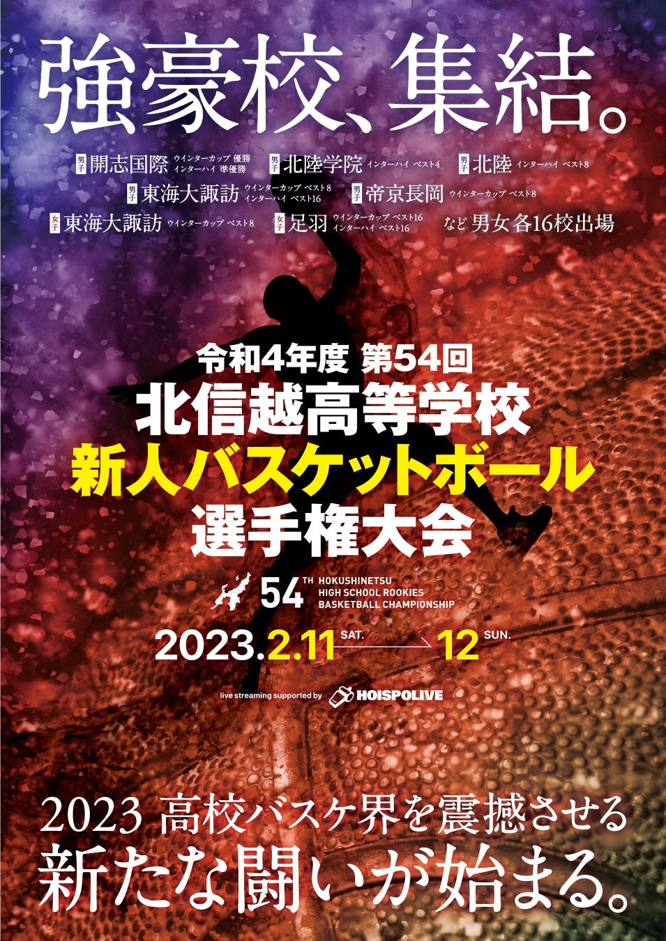 全国優勝の開志国際、ベスト4北陸学院、ベスト8東海大諏訪・帝京長岡などの新チームが、日本一を目指してスタートを切ります! 今年の高校バスケ界を占う意味でも見逃せない大会です!!
