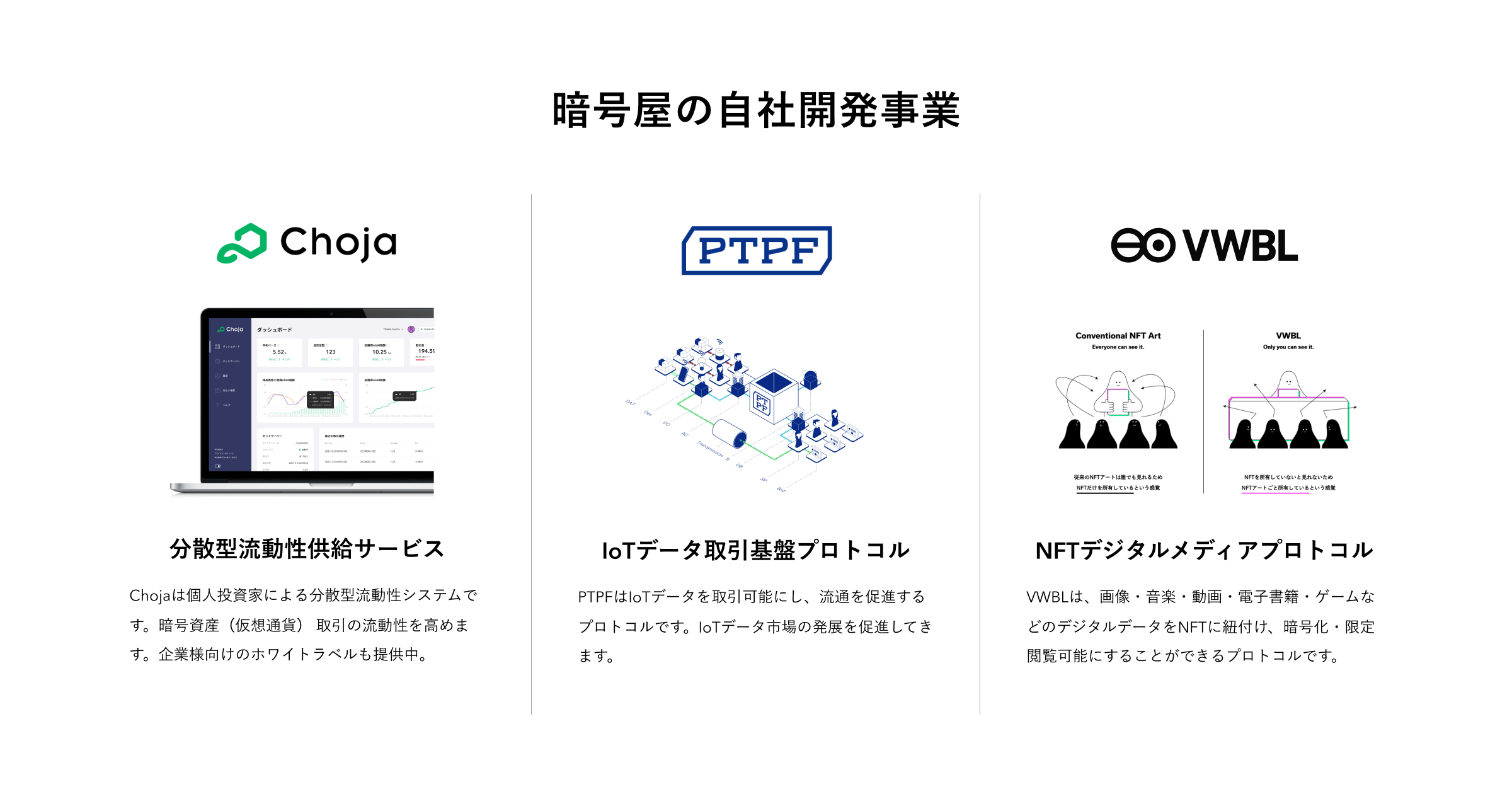 暗号屋は福岡と東京をベースに、ブロックチェーン技術が拓く、新しい経済活動を産み出し社会実装する為に創られた技術組織です。当社はブロックチェーン技術が普及する事による「あたらしいインターネット時代」の到来に熱狂し、様々な問題解決を行うことに注力しています。ブロックチェーンのメリットを最大限活用したプロダクトを創るにはその思想の理解と幅広い技術選定の知識が必要不可欠です。当社はその課題に対して仮説を立て、実験を行いながら新しい価値の創造に取り組んでいます。