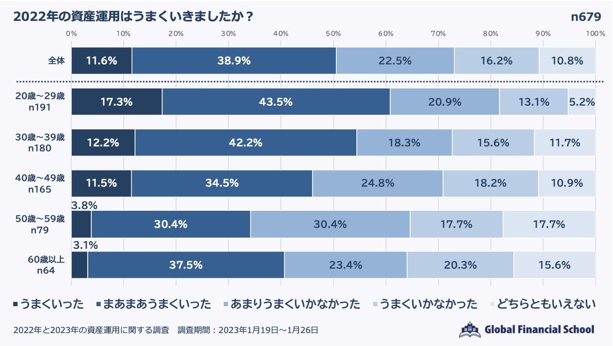 2022年の資産運用、全体の半数がうまくいったと回答し、特に若い世代に顕著