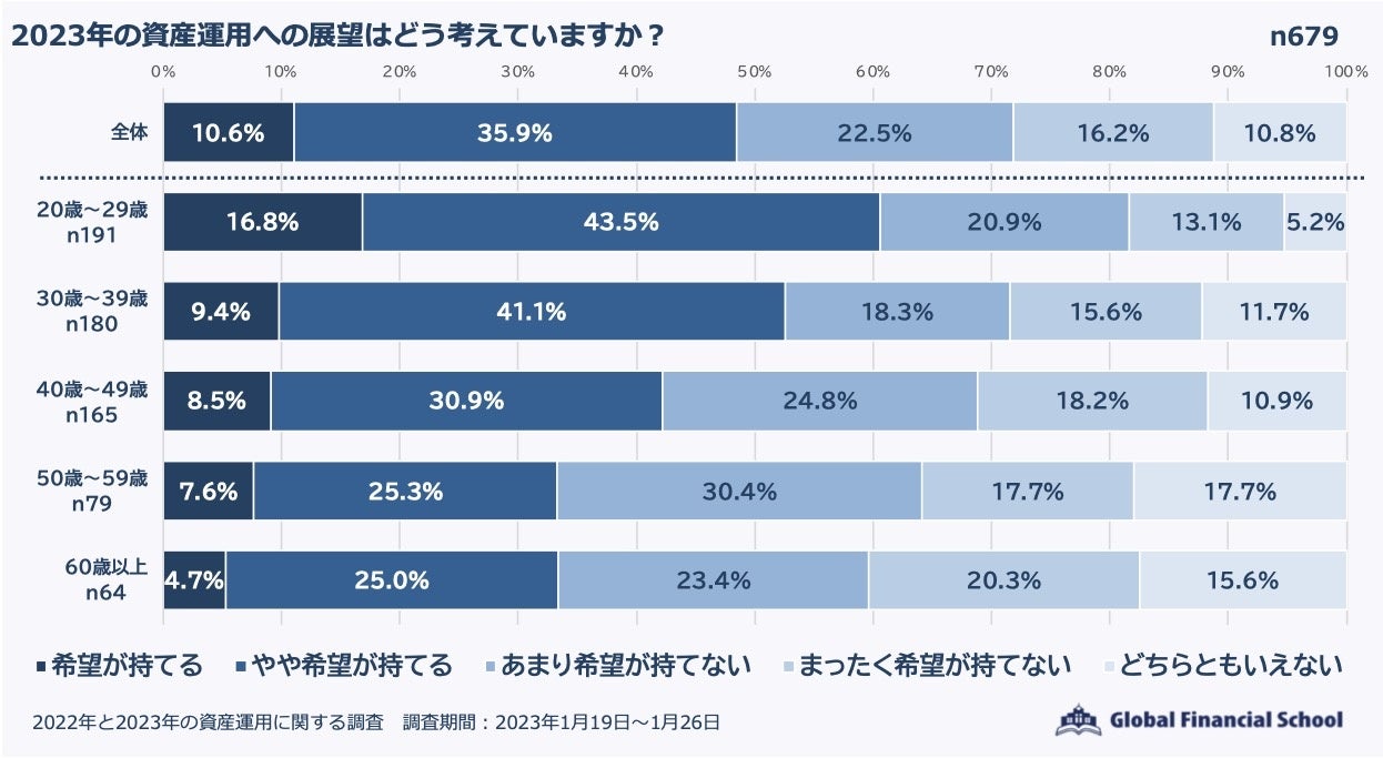 2023年の資産運用の展望も若い世代を中心に希望を持っている人が多い傾向に