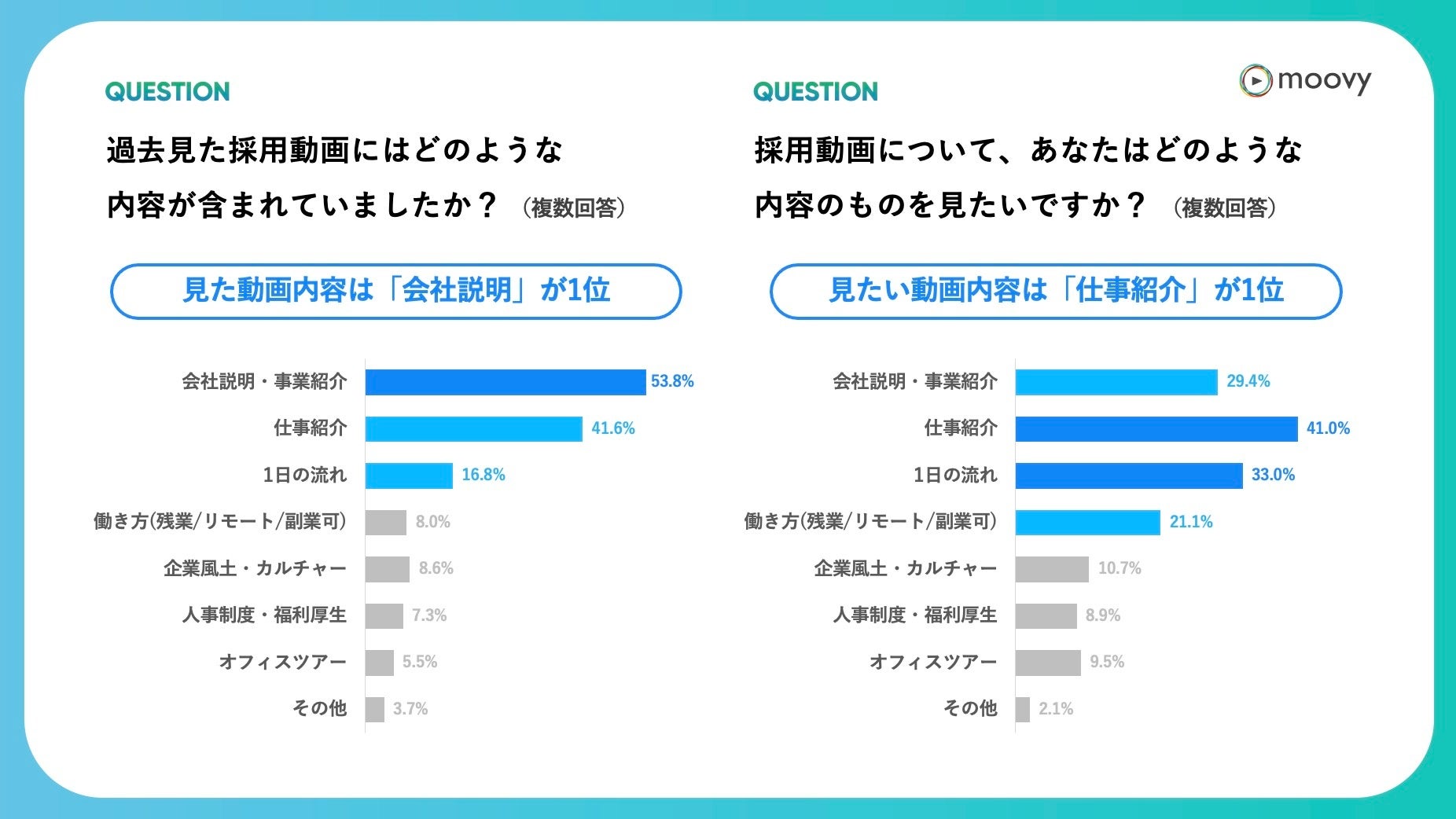 よく見る採用動画は「会社概要」だが、見たい動画テーマの1位は「仕事紹介」、2位は「1日の流れ」