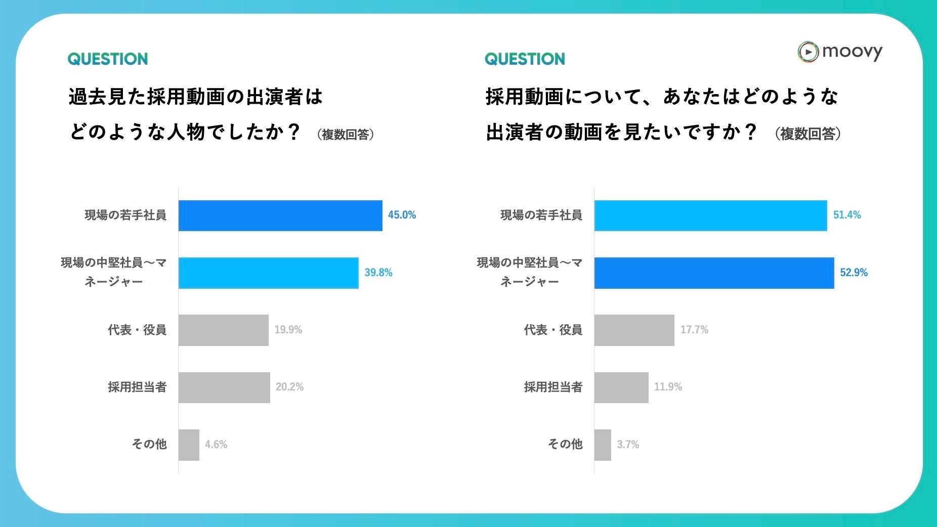 見たい採用動画の出演者は「現場の中堅社員〜マネージャー」が1位
