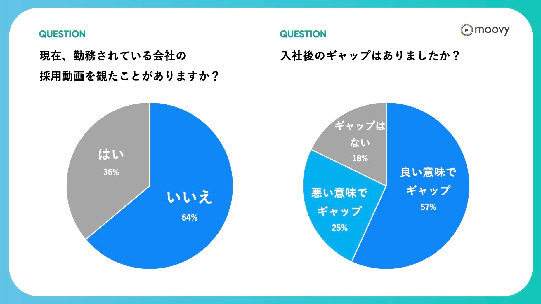採用動画が効果的に求職者にポジティブな期待感を持たせると同時に、実際の職場環境や業務内容がその期待を上回っていることが分かります。入社後に良い意味でのギャップがあることは、従業員の満足度向上や離職率の低下にも寄与する可能性が高いです。