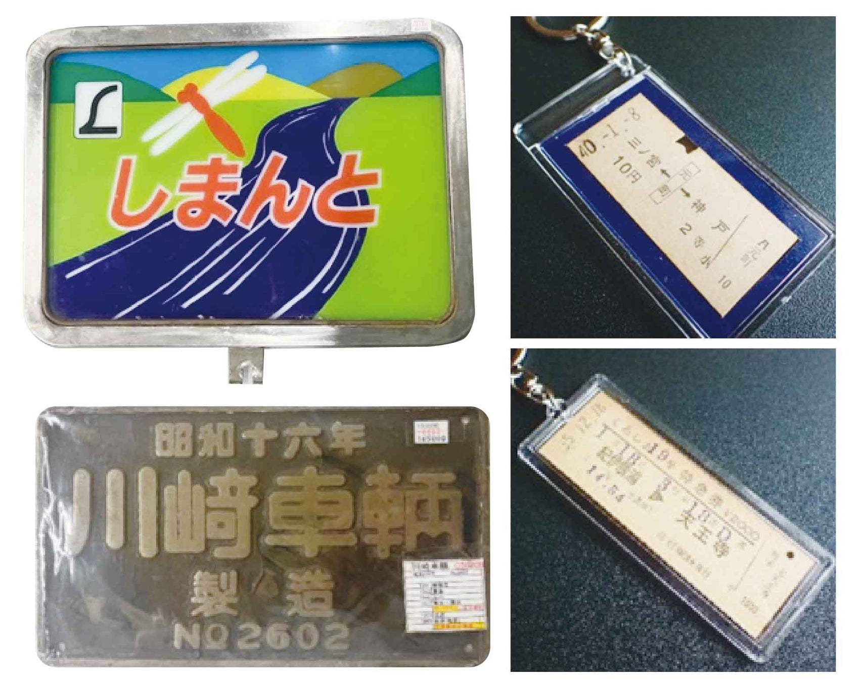 ポップアップショップ先行販売商品や神戸~大阪鉄道開業150年記念商品、懐かしい車両の鉄道中古部品、古い鉄道乗車券キーホルダーなどの鉄道グッズ大集合