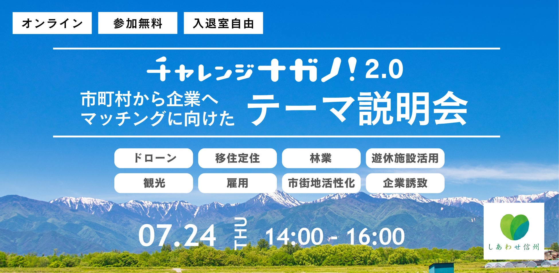 【長野県✖️Publink】チャレンジナガノ2.0事業にて、地域課題を持つ8市町村がピッチし、ともに地域の活性化を目指す企業を募集します!