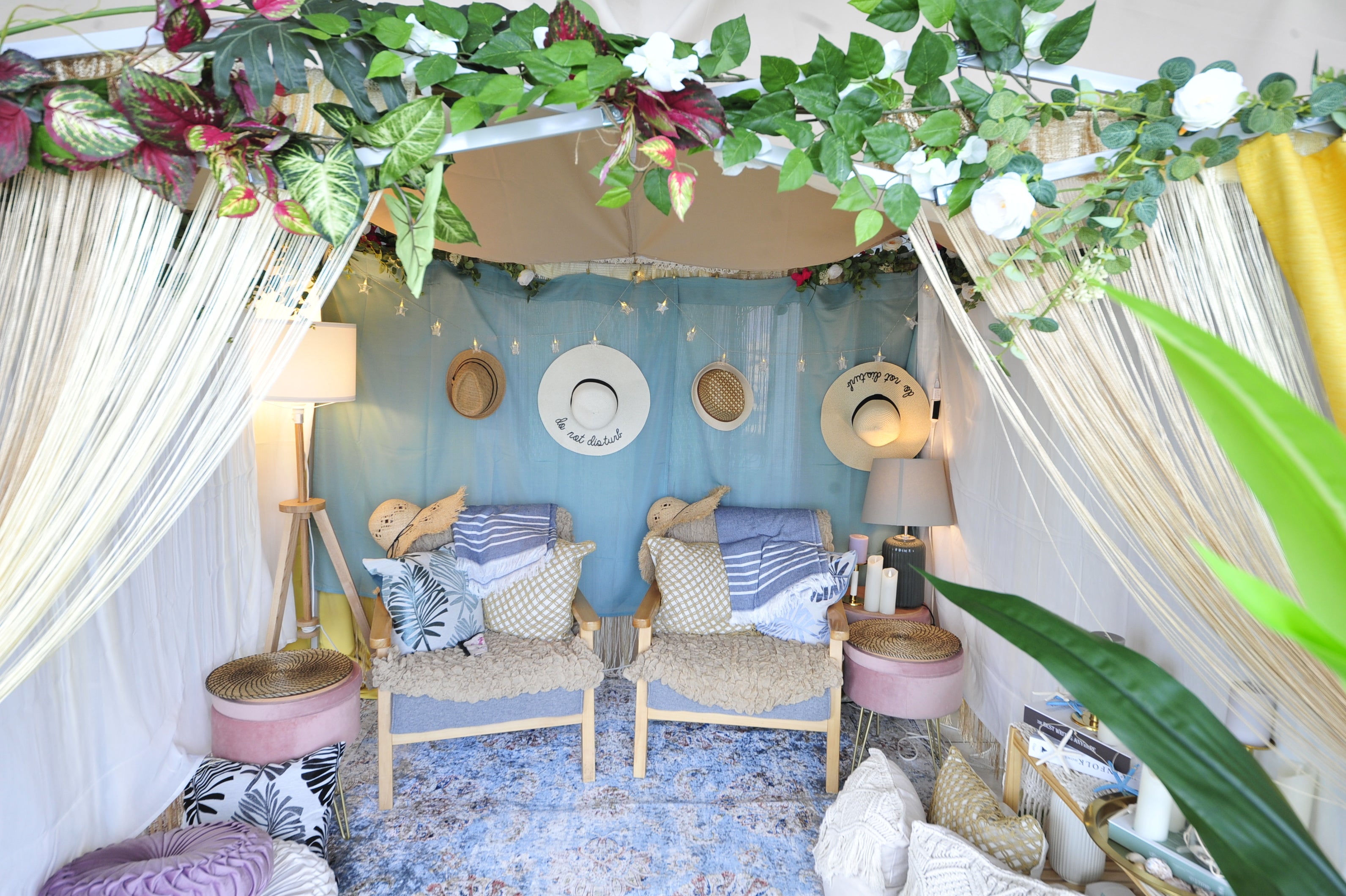 ゆったりのんびり過ごしていただけるようチェアやテーブルはもちろん、よりフォトジェニックに楽しむアイテム、ハットやサングラスなど撮影小物もご用意。