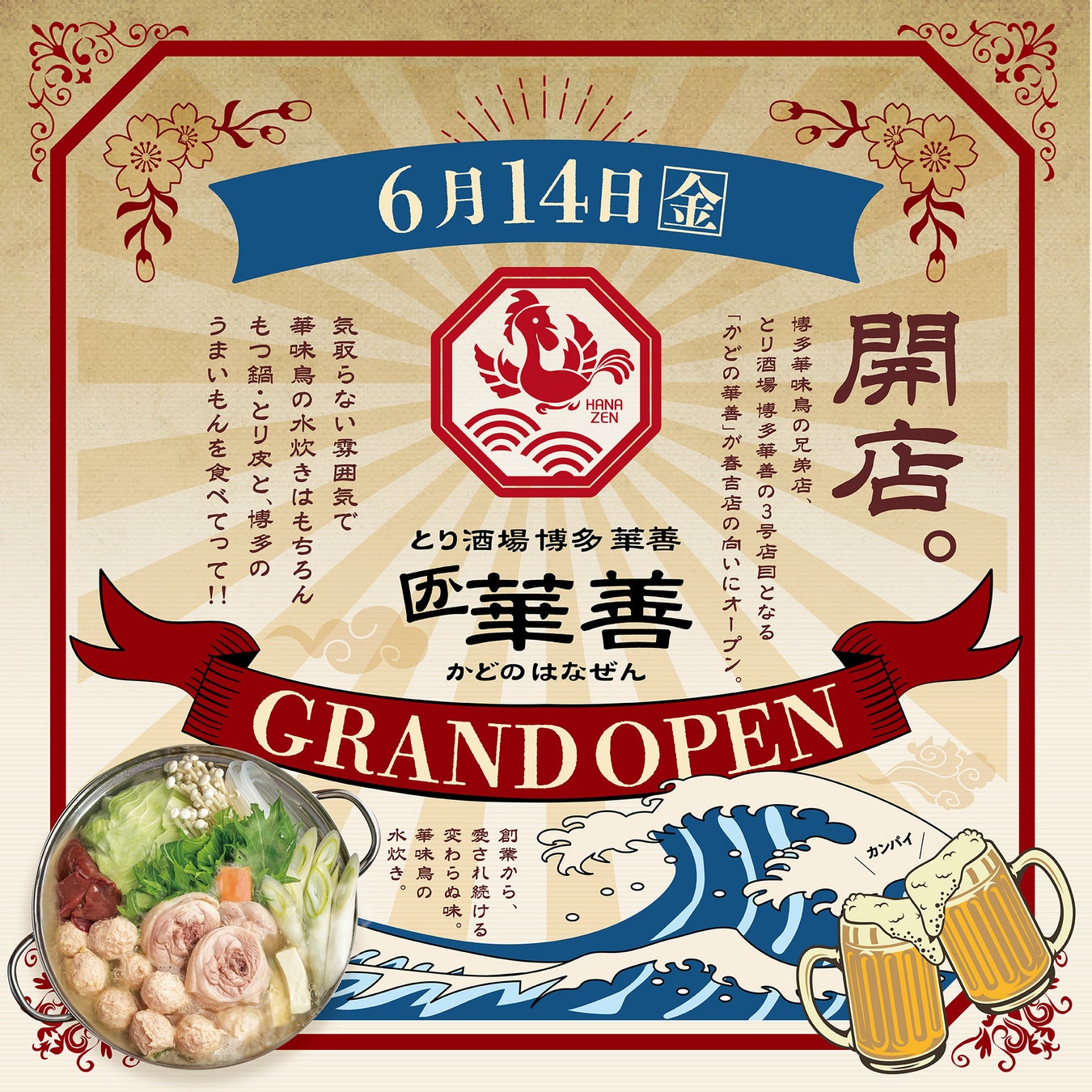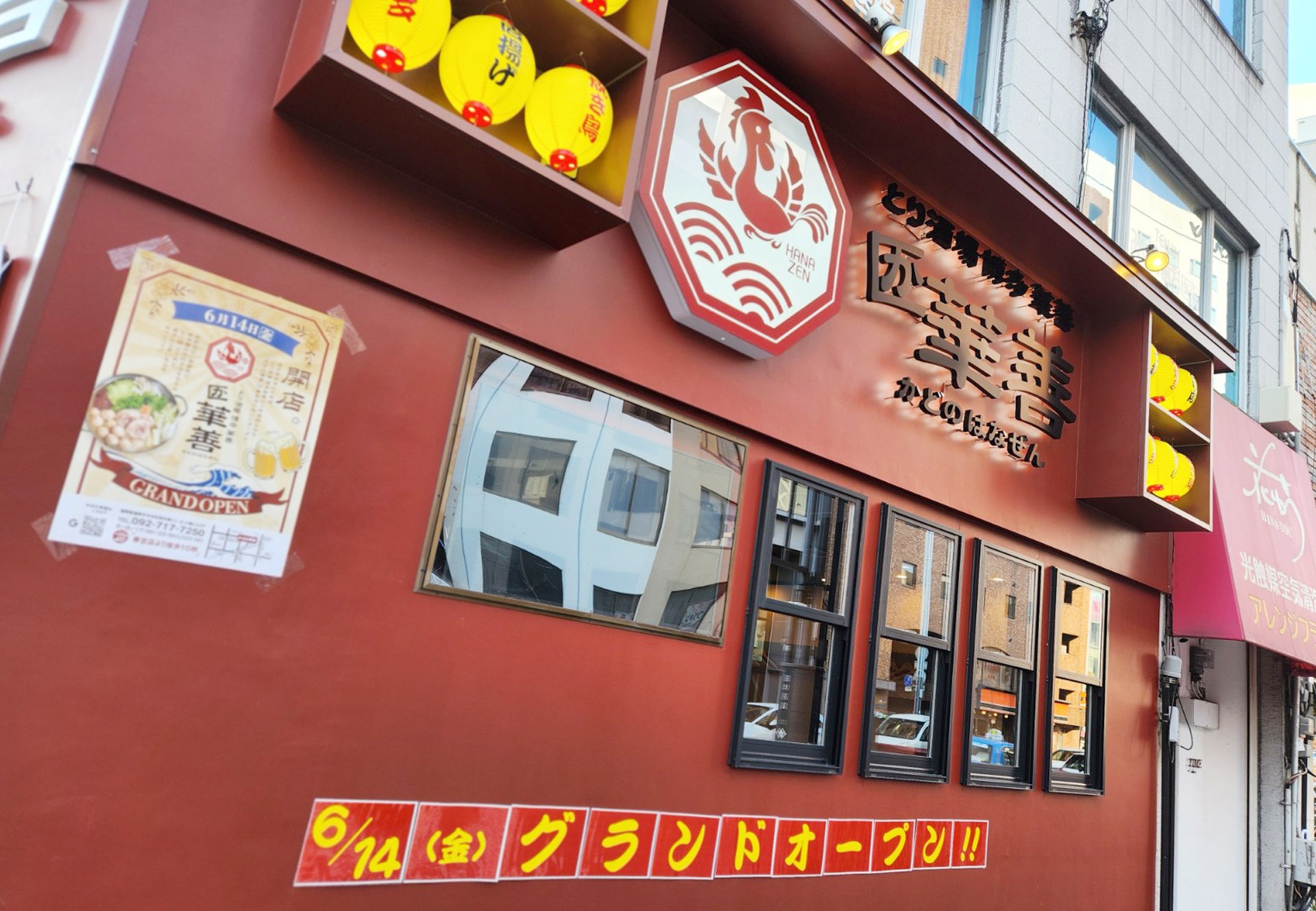 【福岡 NEW OPEN!!】2024年6月14日(金)に、博多華味鳥の運営会社が待望の3店舗目となる大衆居酒屋『とり酒場 博多華善 かどの華善』をオープン!!