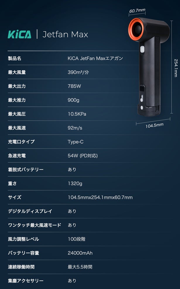 世界120ヵ国のユーザーに愛用されているFeiyuTechのサブブランド、ハイスペック家電の専門家KiCA(本社:Guilin Feiyu Technology Incorporated Company)は、洗車後の水飛ばしが極上に快適!FeiyuTech発のシリーズ最強風速エアガン「 KiCA JetFan Max」の先行予約販売を応援購入サイトMakuakeにて、1月7日(火)11時より開始しました。