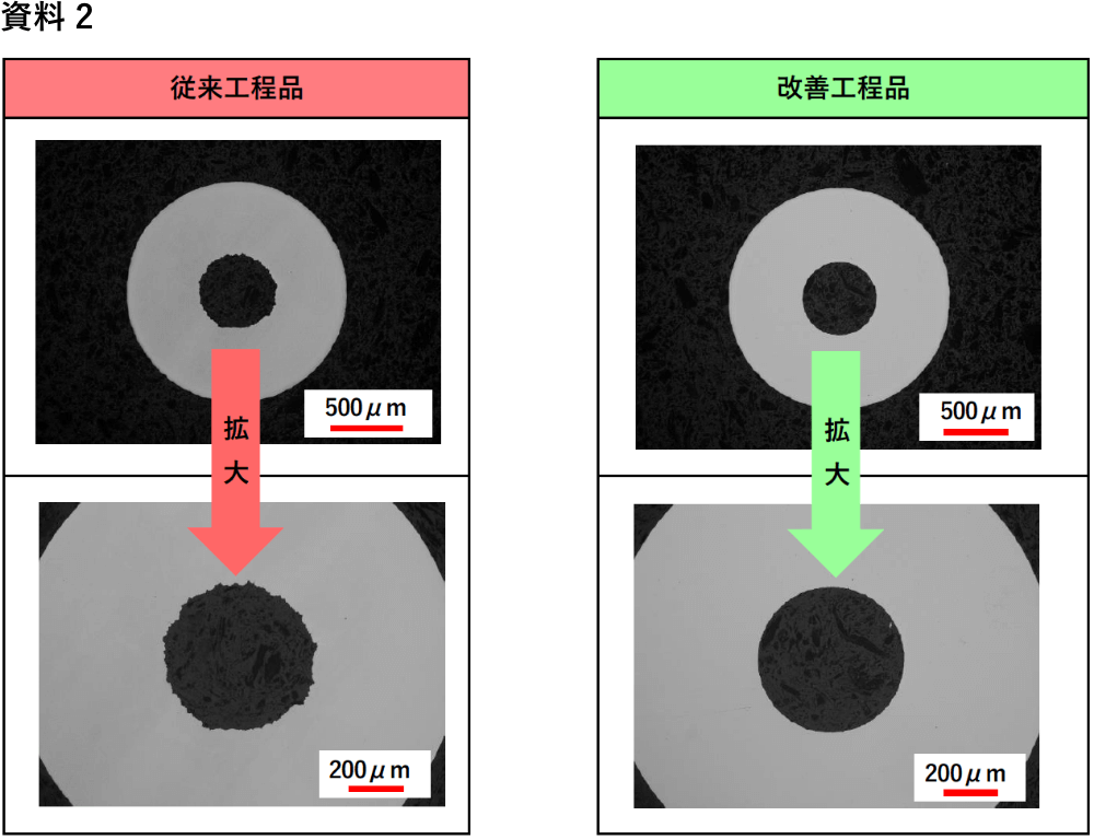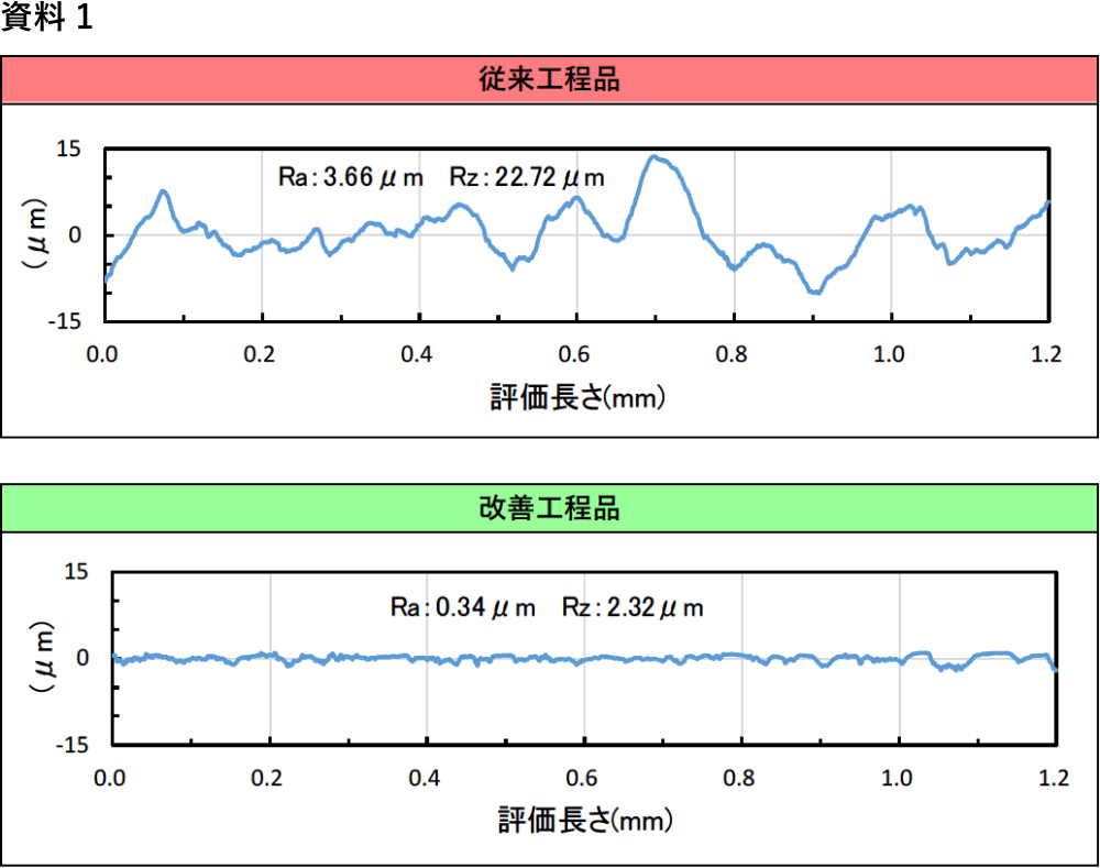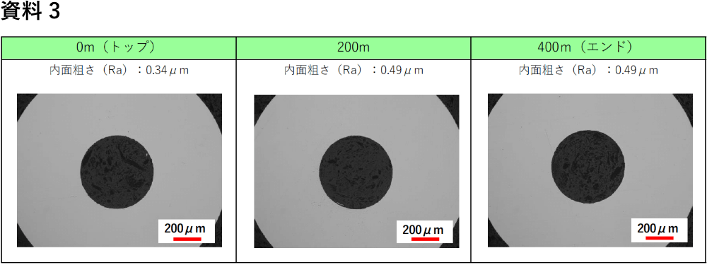 ①従来の製品と比べて内面粗さが大幅に向上しています(資料1)。