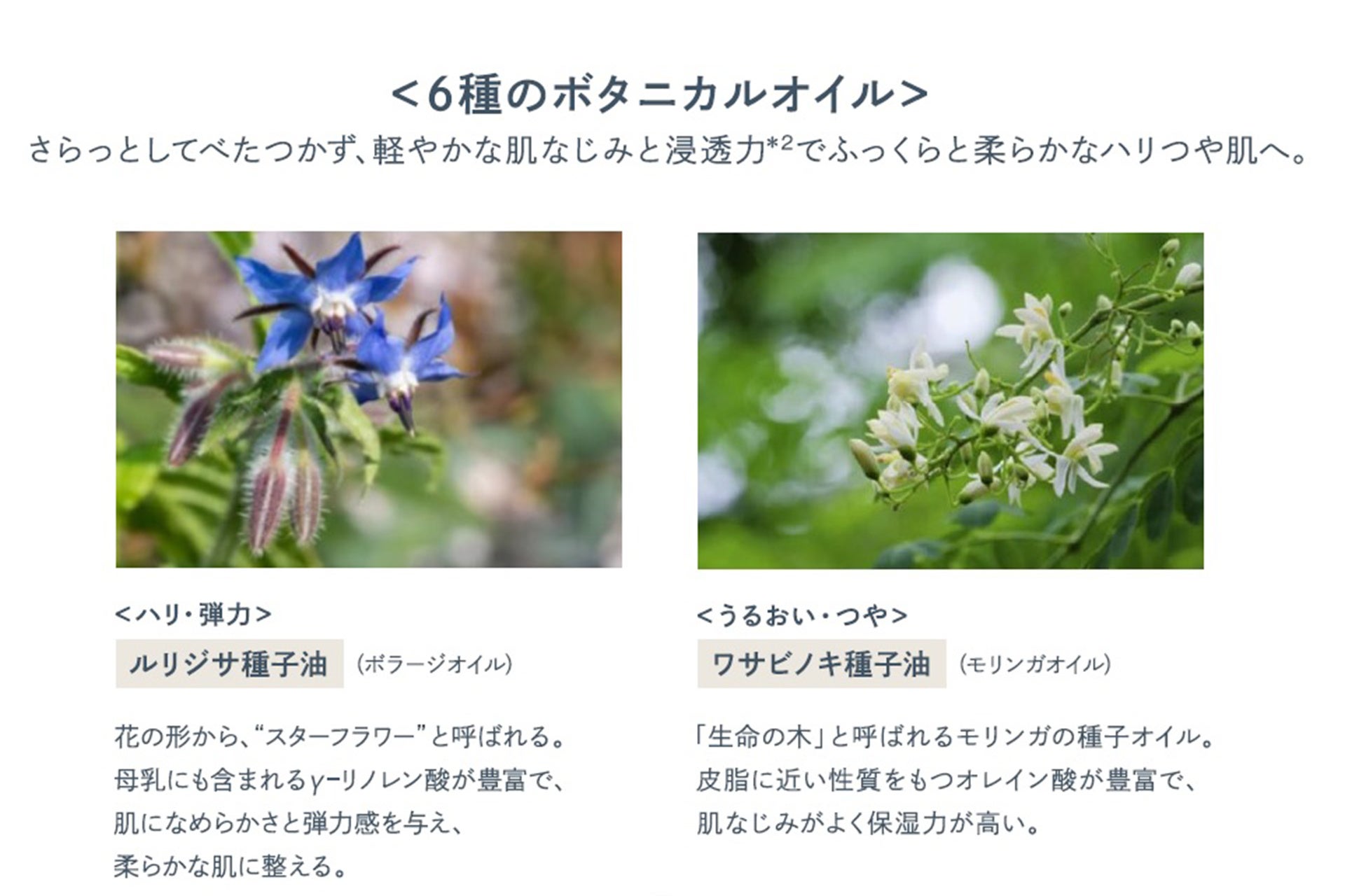 エイジングサイン*¹にアプローチする、6種のボタニカルオイルと植物エキス