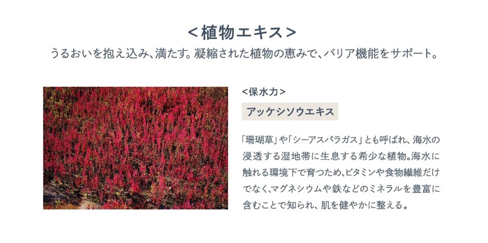 うるおいで満たし、柔らかなハリつや肌へ導く植物オイル・エキスを厳選配合。