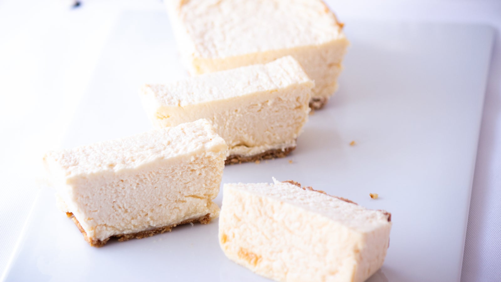 なめらかでクリーミーなクリームチーズとサワークリームをメインに、生クリームを使用し、よりなめらかに仕上げ、とろける食感と口どけの良さにこだわったチーズケーキです。お年寄りから小さな子どもまで食べられるよう、レモン/香料は使っておりません。