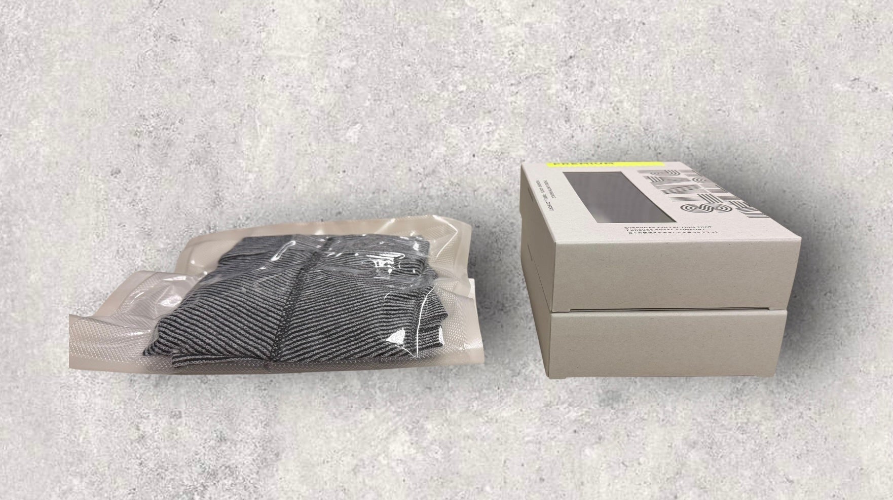 備蓄のための小型・軽量化には、ウエストゴムのない「世界初のゴムなし包帯パンツ」が鍵を握った。通常のパンツはウエストゴムが邪魔をして圧縮できないが、ゴムのない構造により極小サイズへの真空パックが可能になった(圧縮パック1枚74g)。