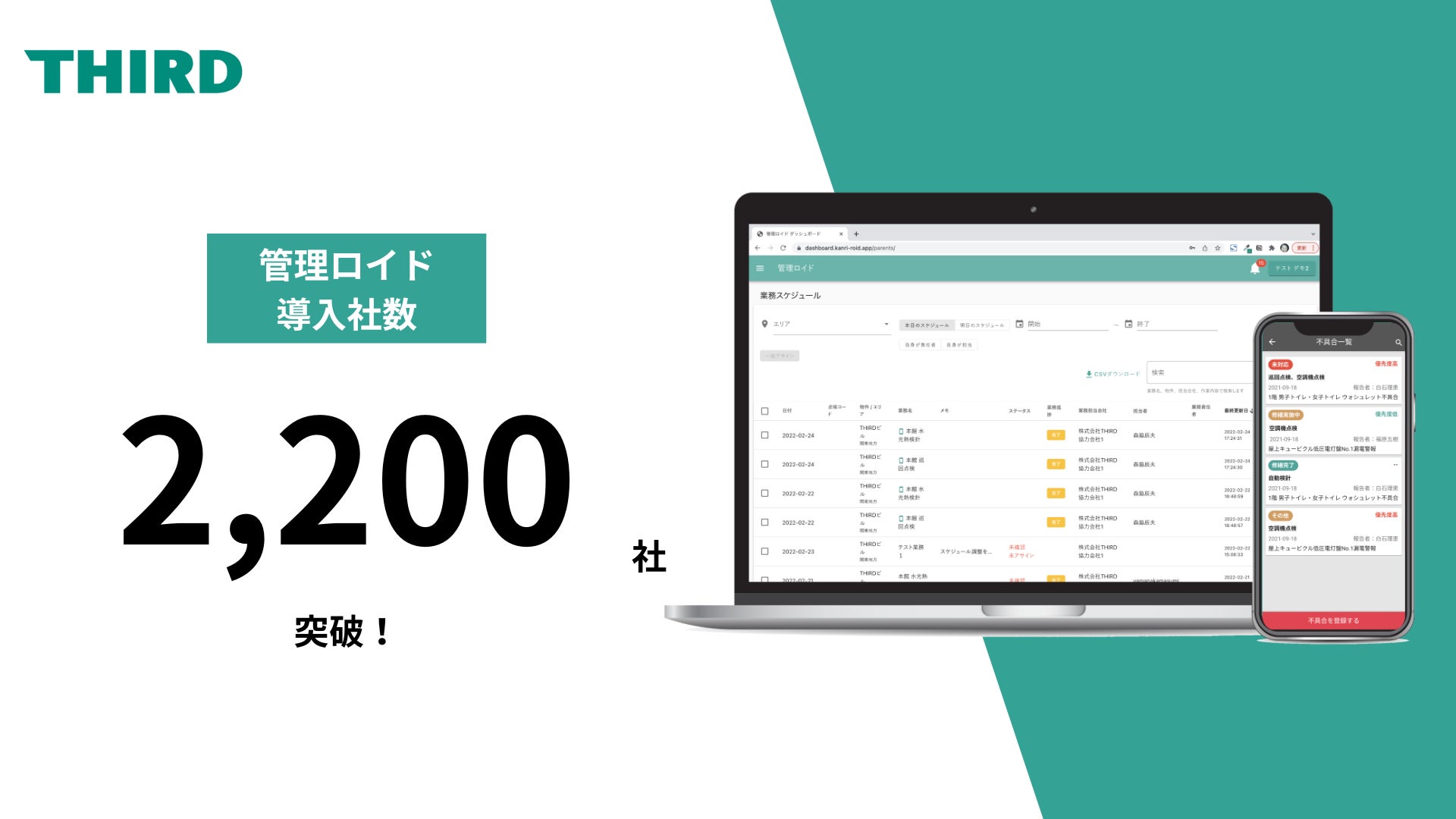 THIRD、AI建物管理クラウドシステム「管理ロイド」導入社数2,200社突破