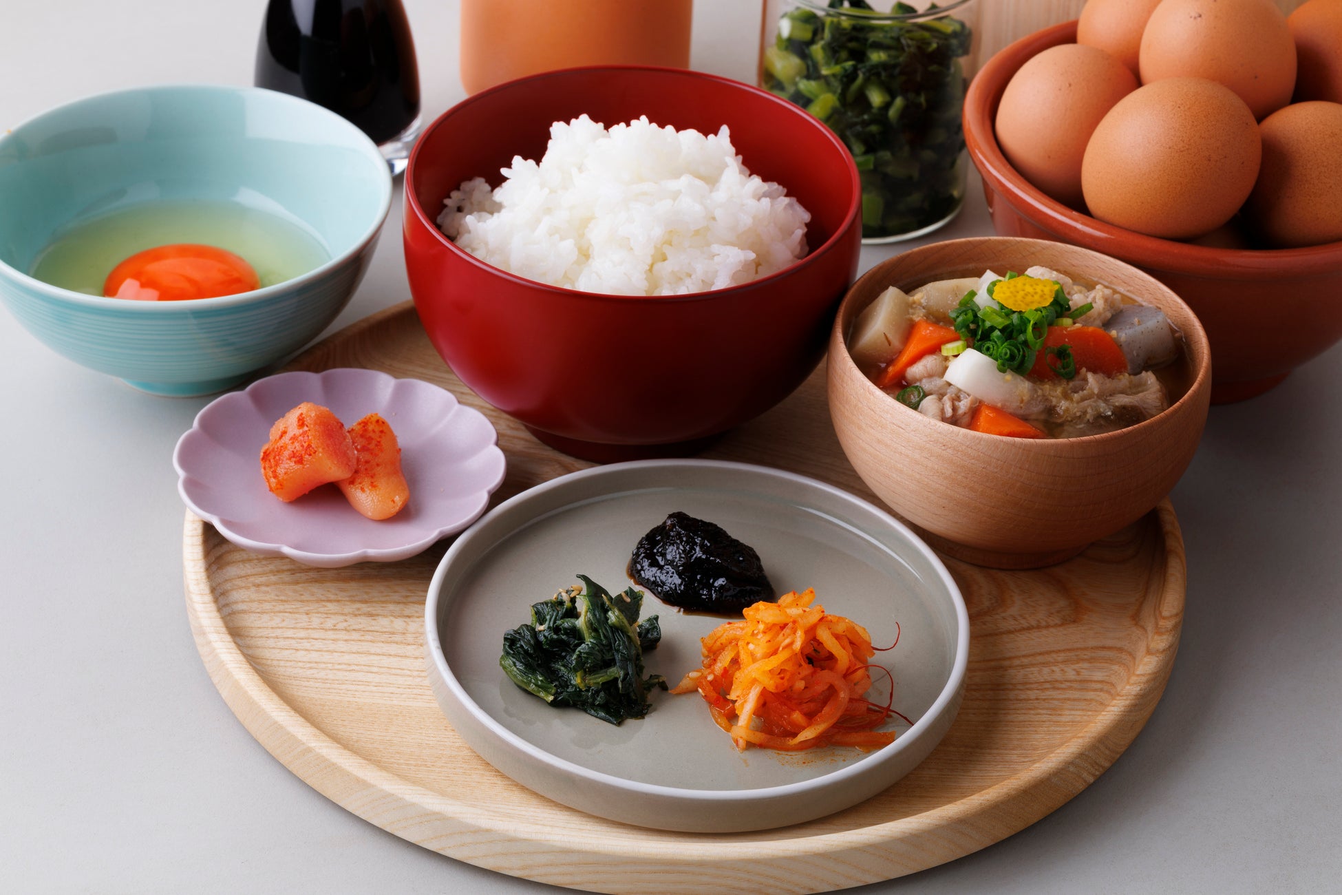 日本たまごかけごはん研究所とコラボレーションし、羽釜で炊いたふっくらとした国産ブランド米のごはん(おかわり無料)とともに、究極の卵かけご飯(TKG)を お楽しみいただけます。