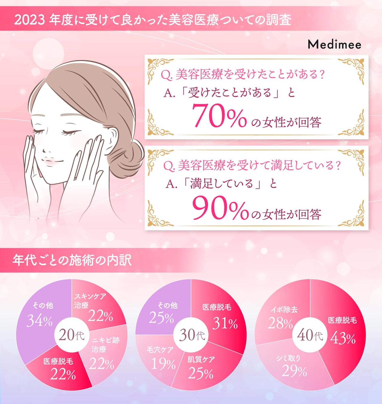【2023年度まとめ】美容医療の実態について20代~40代が利用する美容医療情報プラットフォーム「Medimee」が徹底調査!